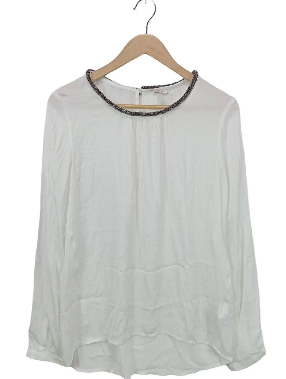 - Rundhalsausschnitt, Bund am Ärmelsaum, Knopfverschluss hinten, Casual-Look, Elegant, Street-Fashion-Look