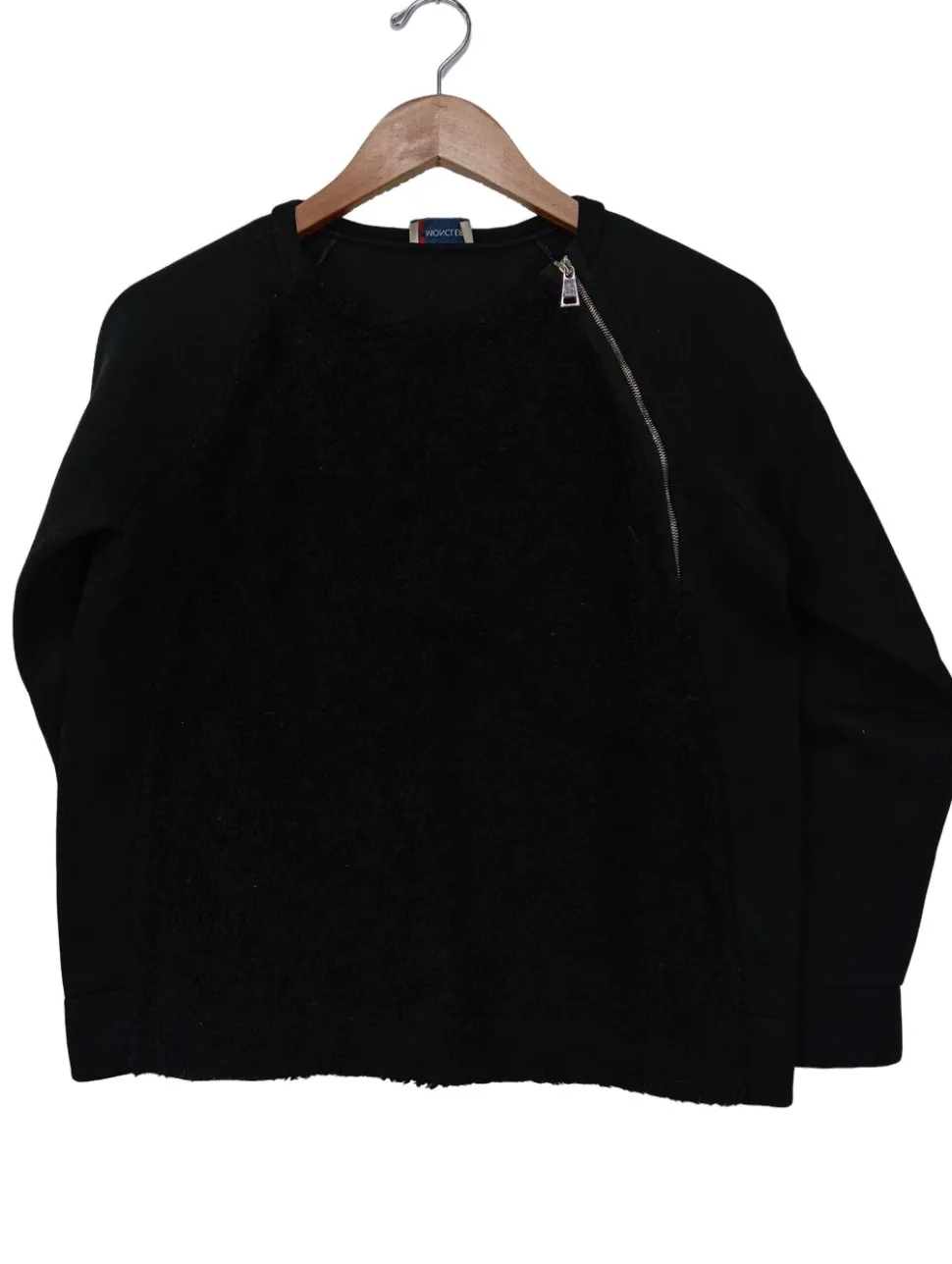- Rundhalsausschnitt, Armbündchen, asymmetrischer Reißverschluss, Casual-Look, schlichter Stil, Street-Fashion-Look