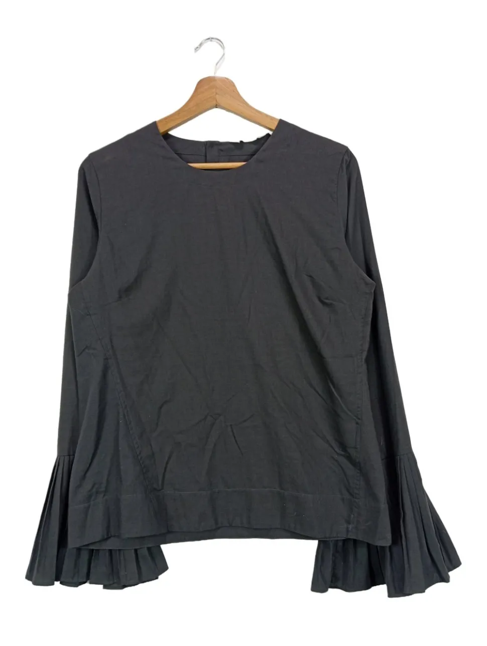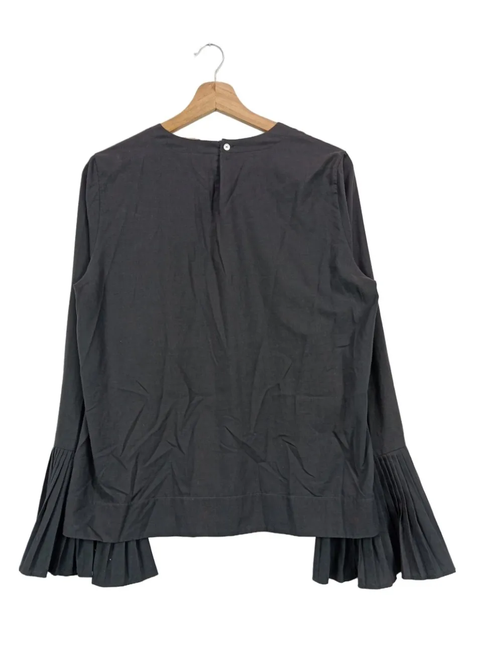 - Rundhalsausschnitt, Raffung am Ärmelsaum, Knopfverschluss hinten, Casual-Look, schlichter Stil, Street-Fashion-Look