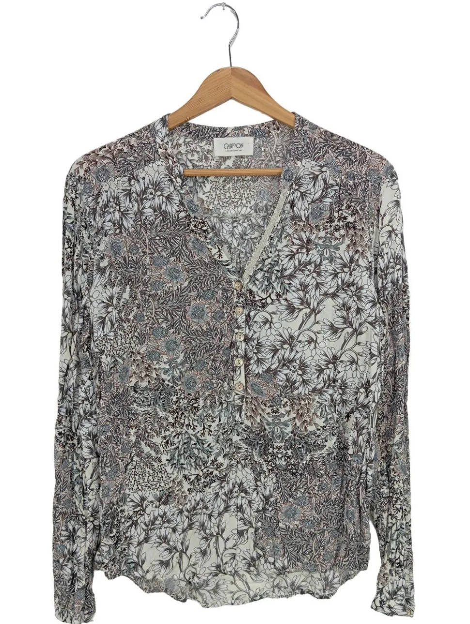 - Cartoon Langarm-Bluse, hellgrau Allover-Druck