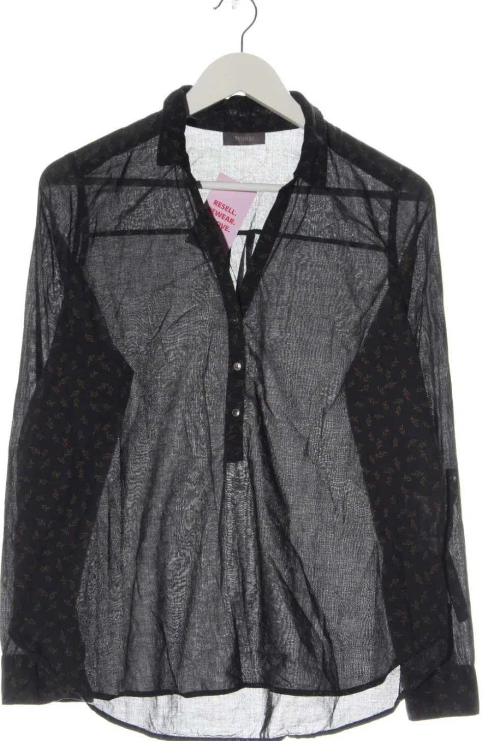 - Yessica Langarm-Bluse, schwarz-braun Allover-Druck