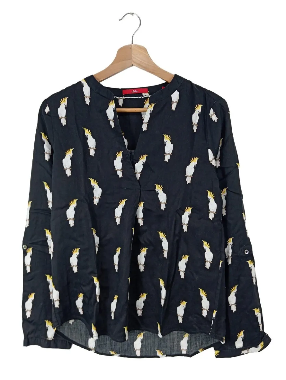 - s.Oliver Langarm-Bluse, schwarz Allover-Druck