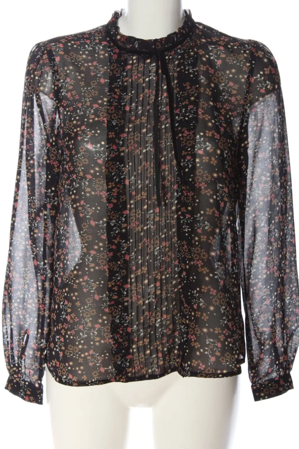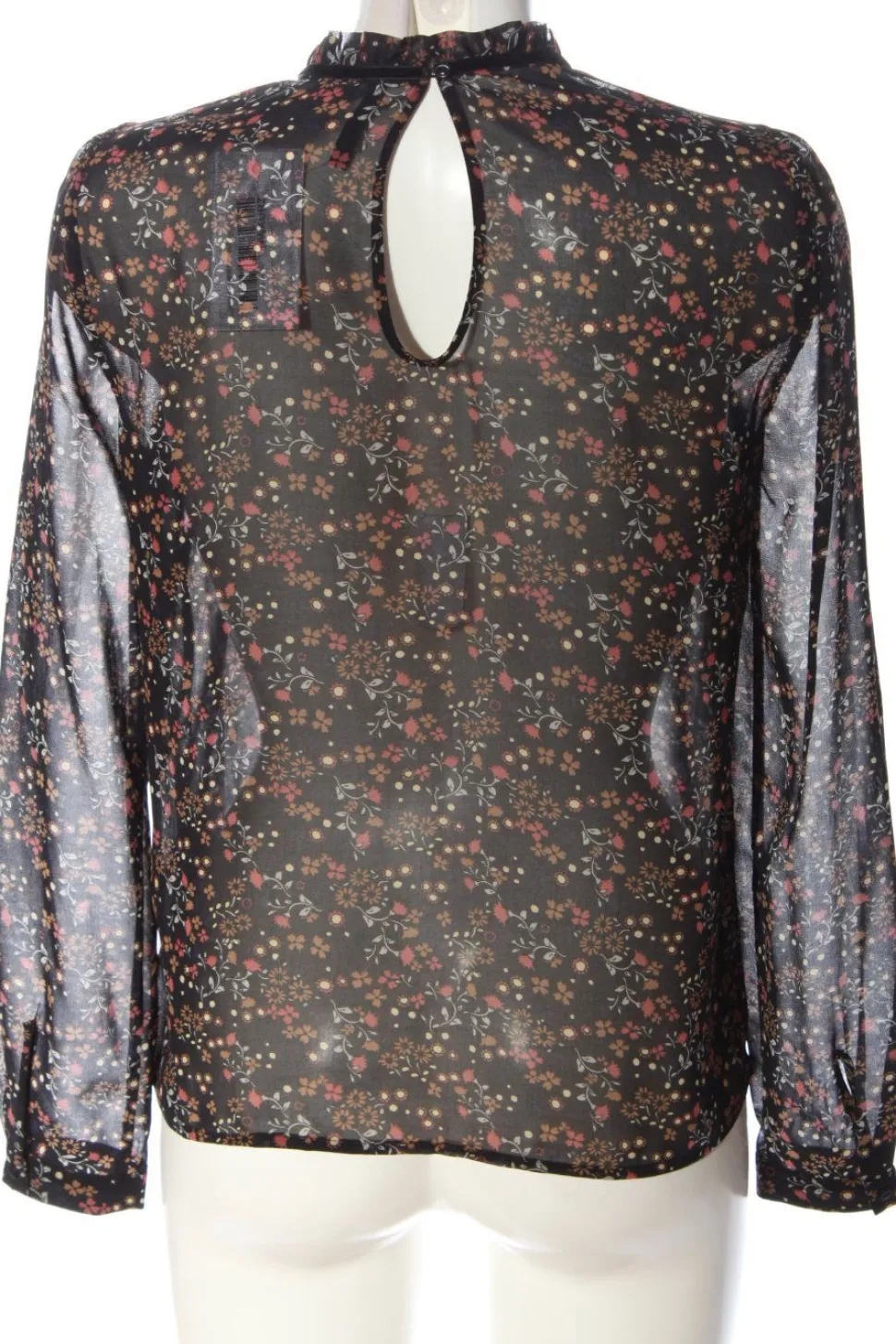- Stehkragen, Knopfverschluss am Ärmelsaum, Knopfverschluss hinten, Allover-Druck, Blumenmuster, Casual-Look, Elegant, klassischer Stil, Transparenz-Optik