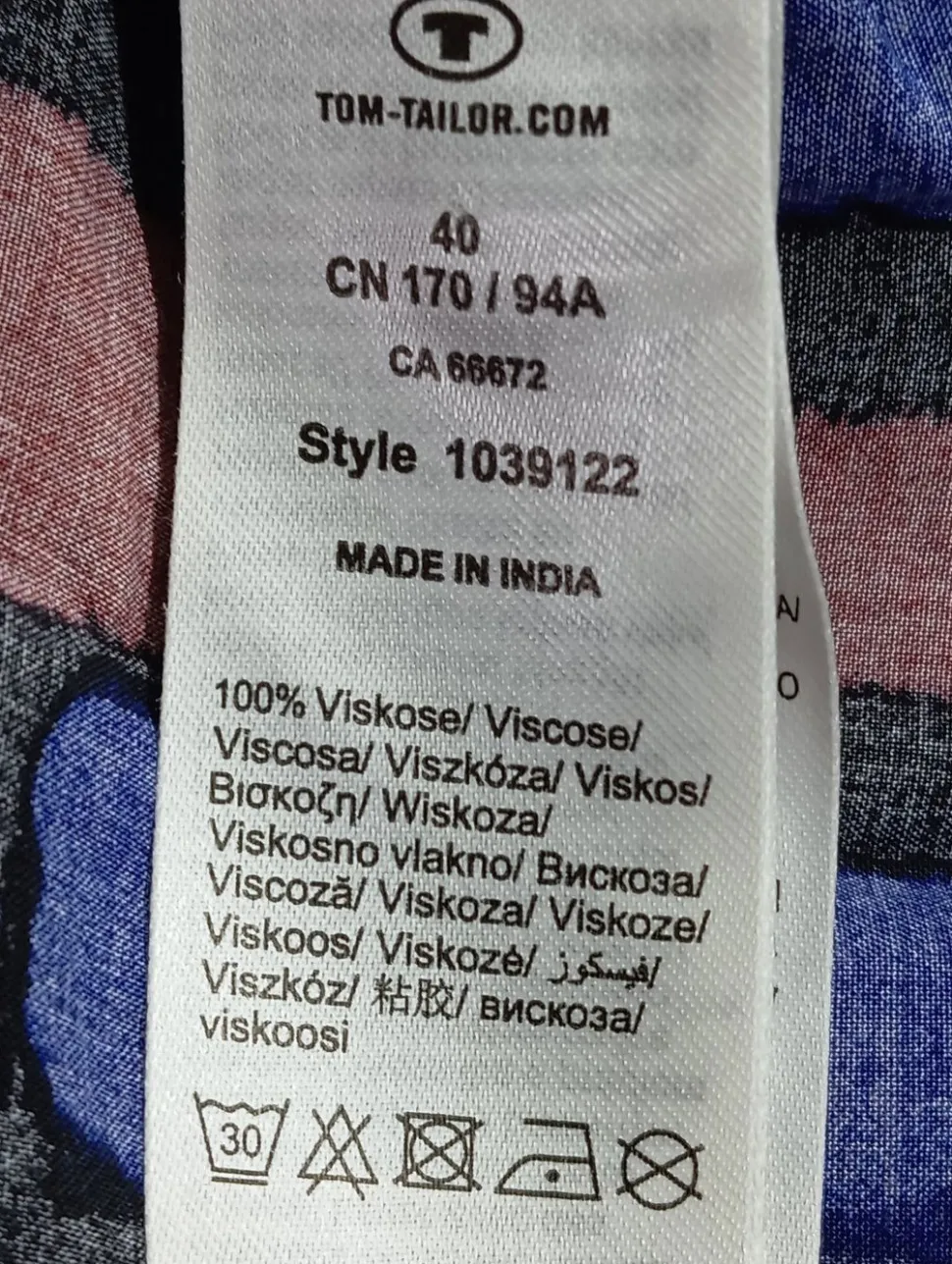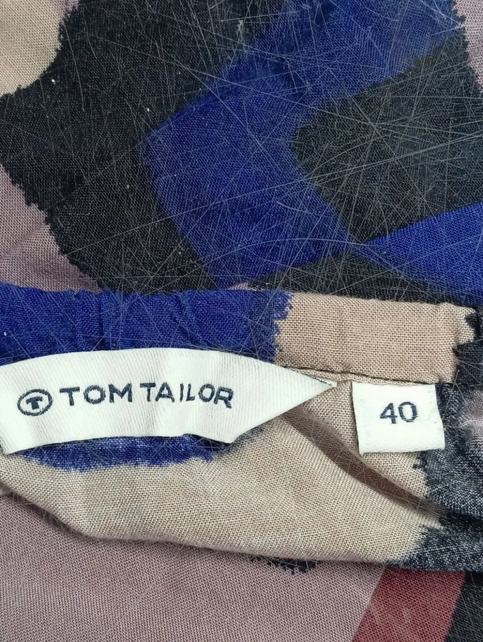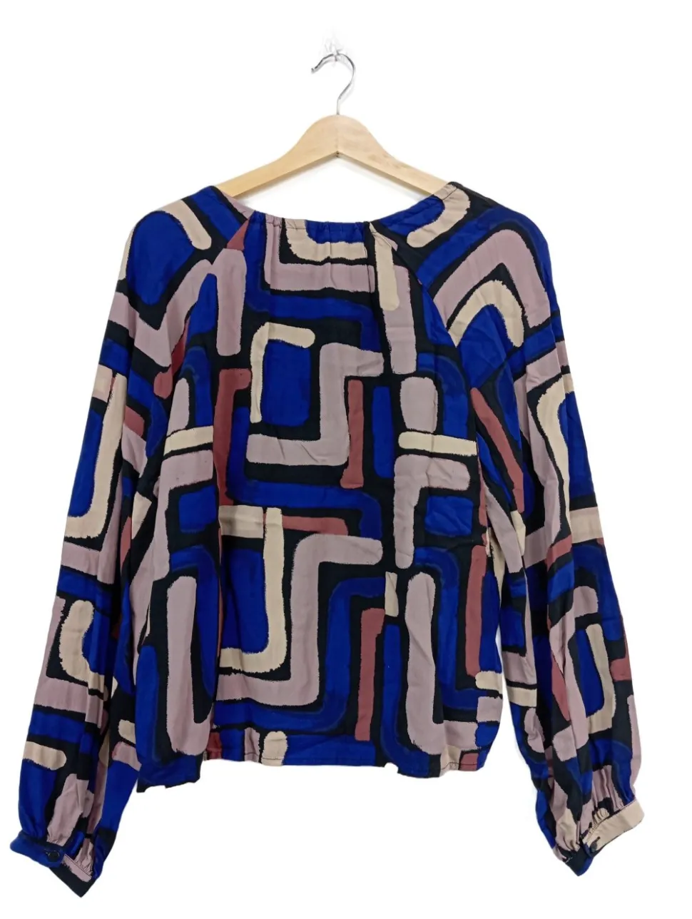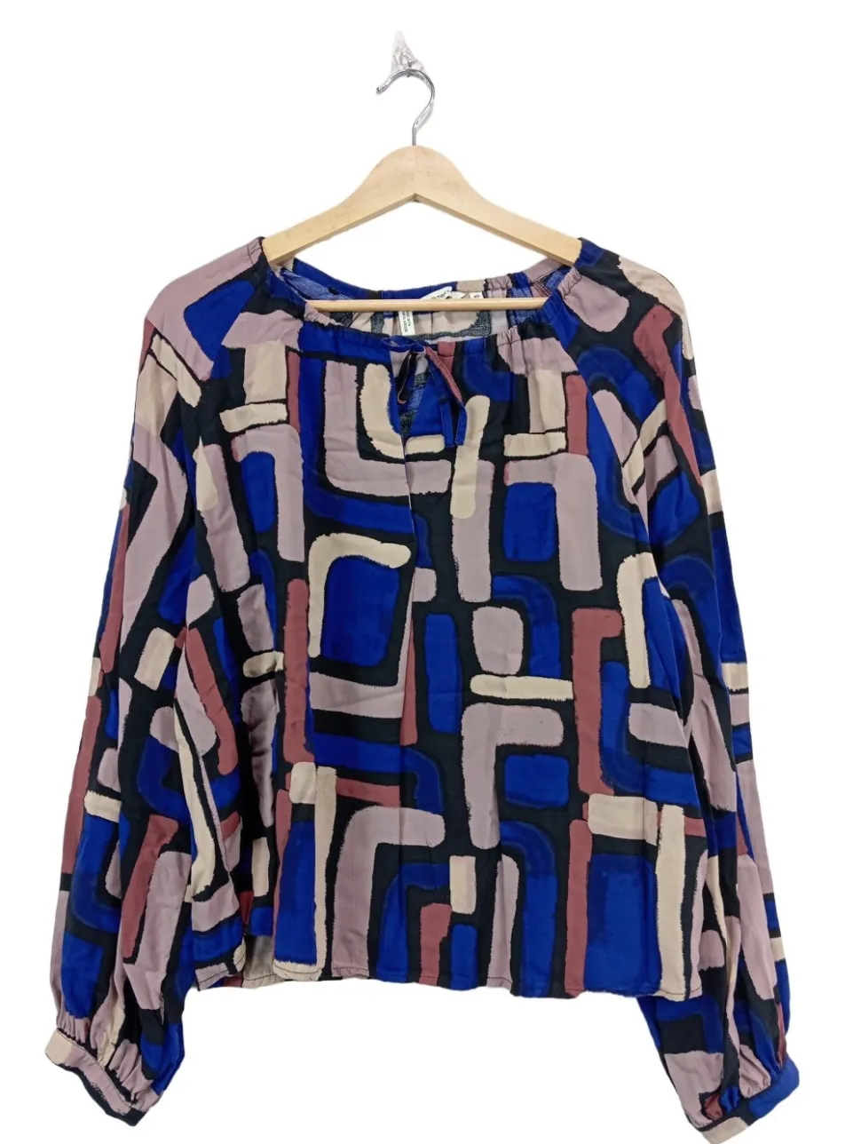- Tom Tailor Langarm-Bluse, blau-pink abstraktes Muster