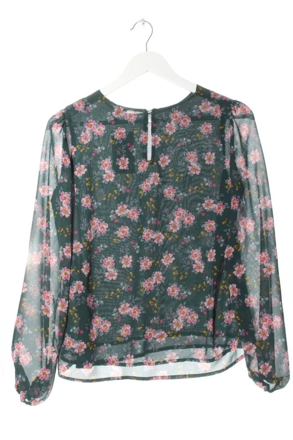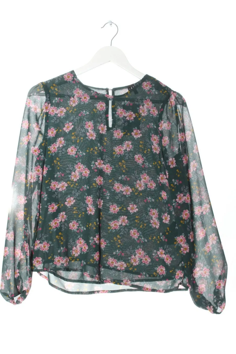 - U-Boot-Ausschnitt, Elastikbündchen am Ärmelsaum, Knopfverschluss hinten, Allover-Druck, Blumenmuster, Casual-Look, Transparenz-Optik, Vintage-Look