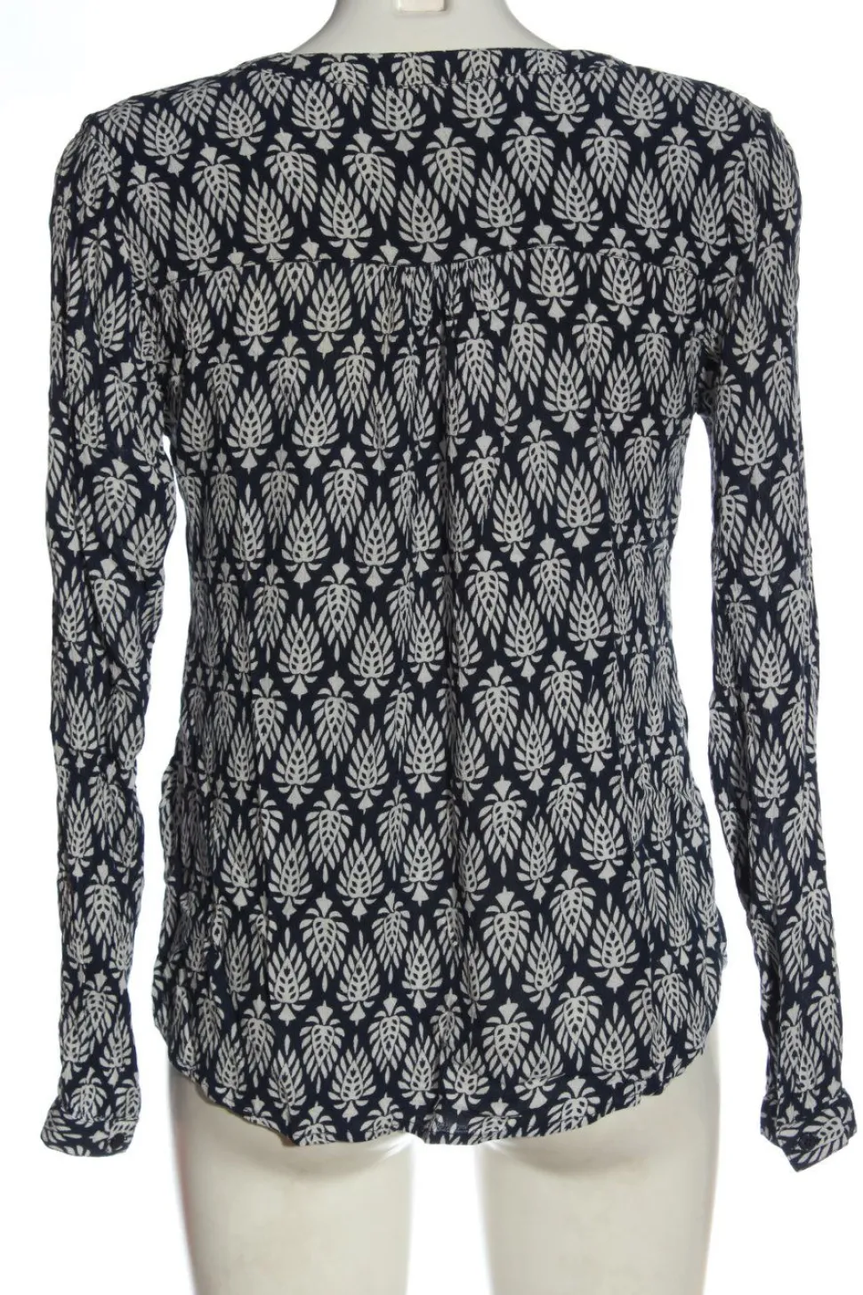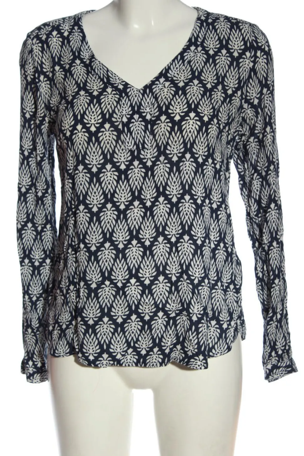 - Kaffe Langarm-Bluse, blau-weiß Allover-Druck