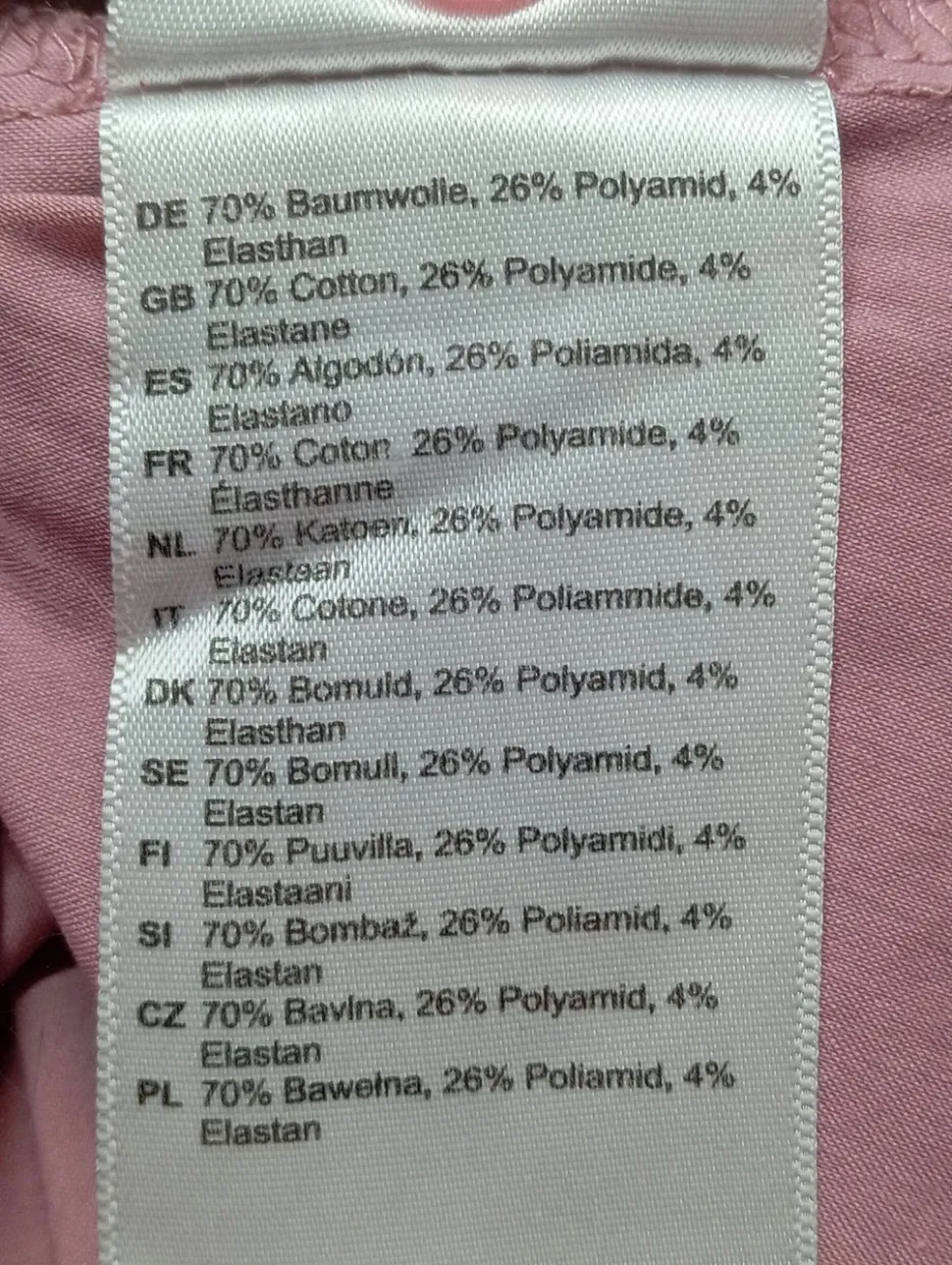 - Außenmaterial: 70% Baumwolle, 26% Polyamid, 4% Elasthan