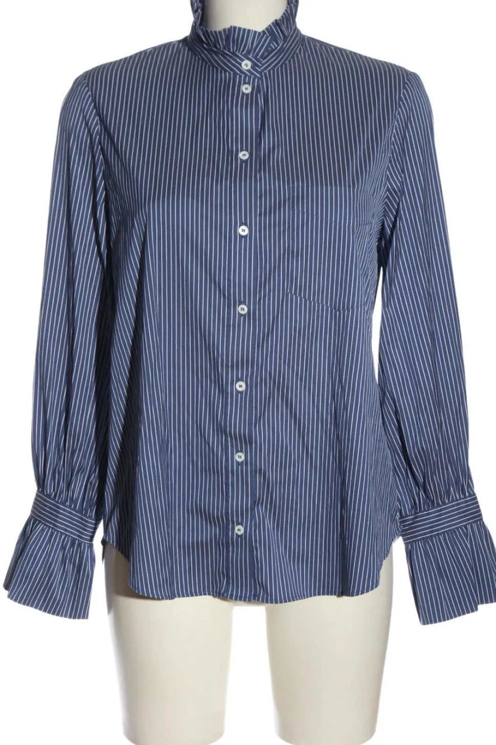- hochgeschnittener Kragen, Knopfverschluss am Ärmelsaum, Knopfverschluss, Allover-Druck, Streifenmuster, Casual-Look, schlichter Stil