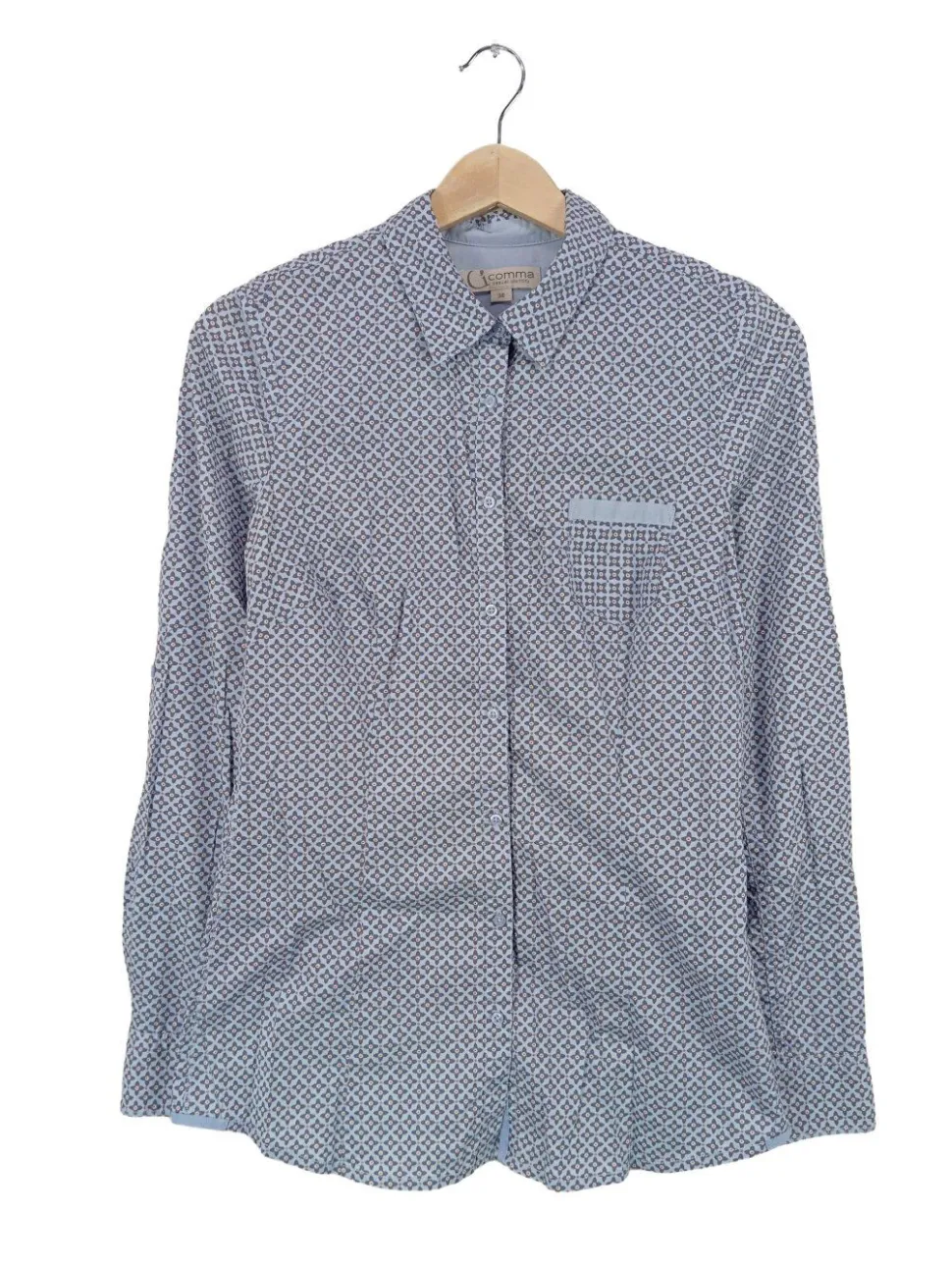- Comma Langarmhemd, hellgrau-hellorange abstraktes Muster