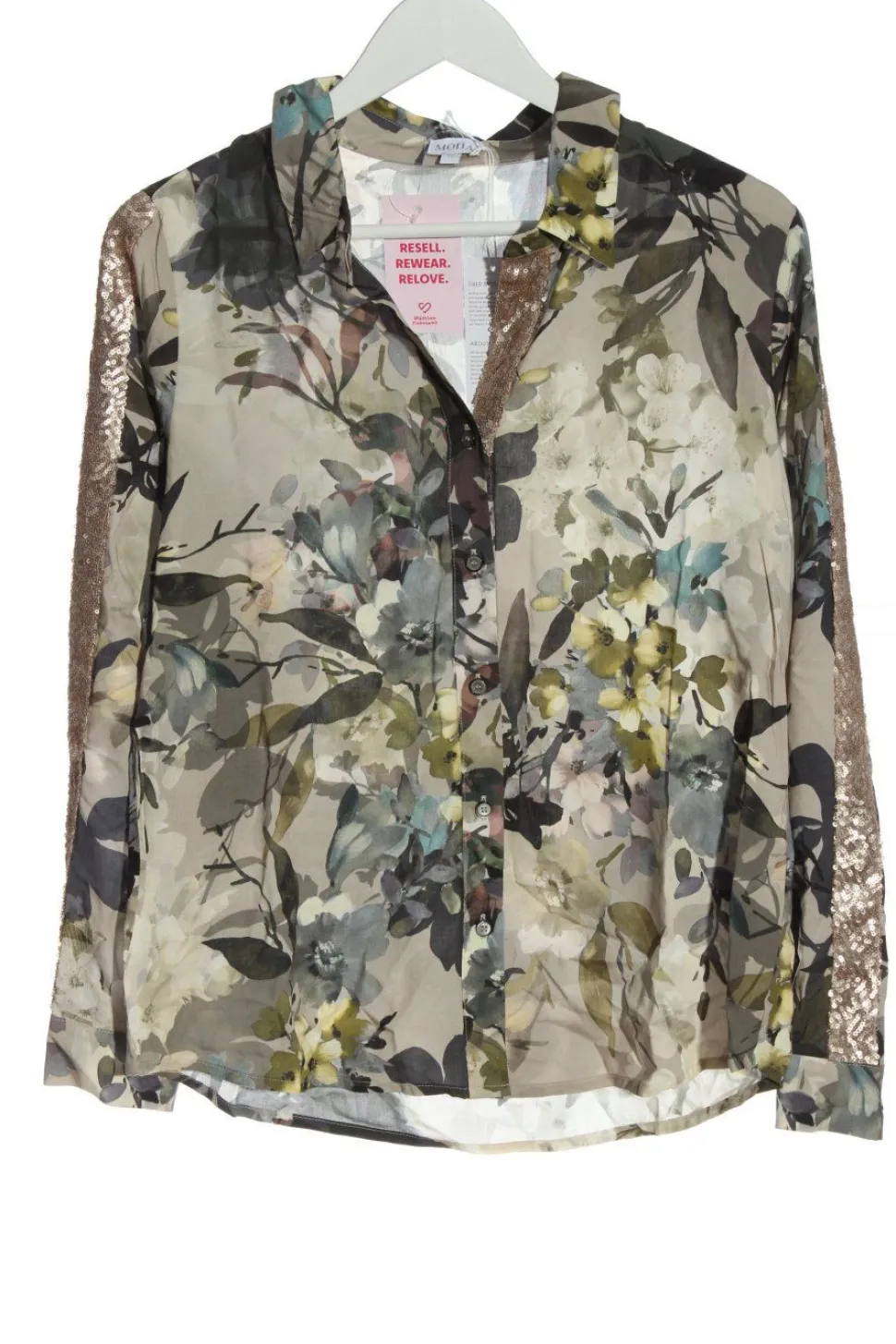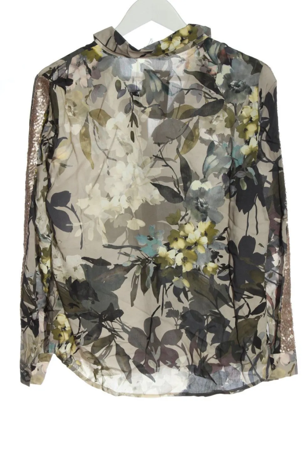 - V-Ausschnitt, Umlegekragen, Knopfverschluss am Ärmelsaum, Knopfverschluss, Allover-Druck, Blumenmuster, Casual-Look, Glitzer-Optik, Street-Fashion-Look