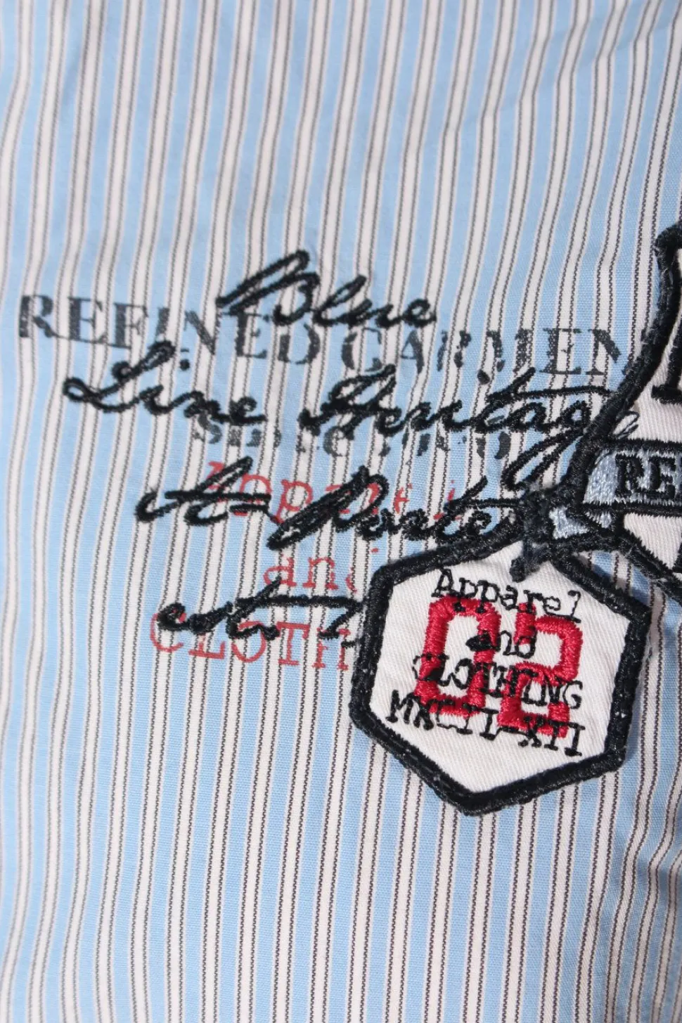 - Hemdkragen, Hemdärmelschlitz, Knopfverschluss, Schriftzug gestickt, Streifenmuster, Casual-Look