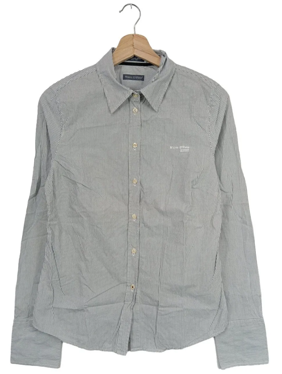 - Marc O’Polo Langarmhemd, hellgrau-weiß Streifenmuster