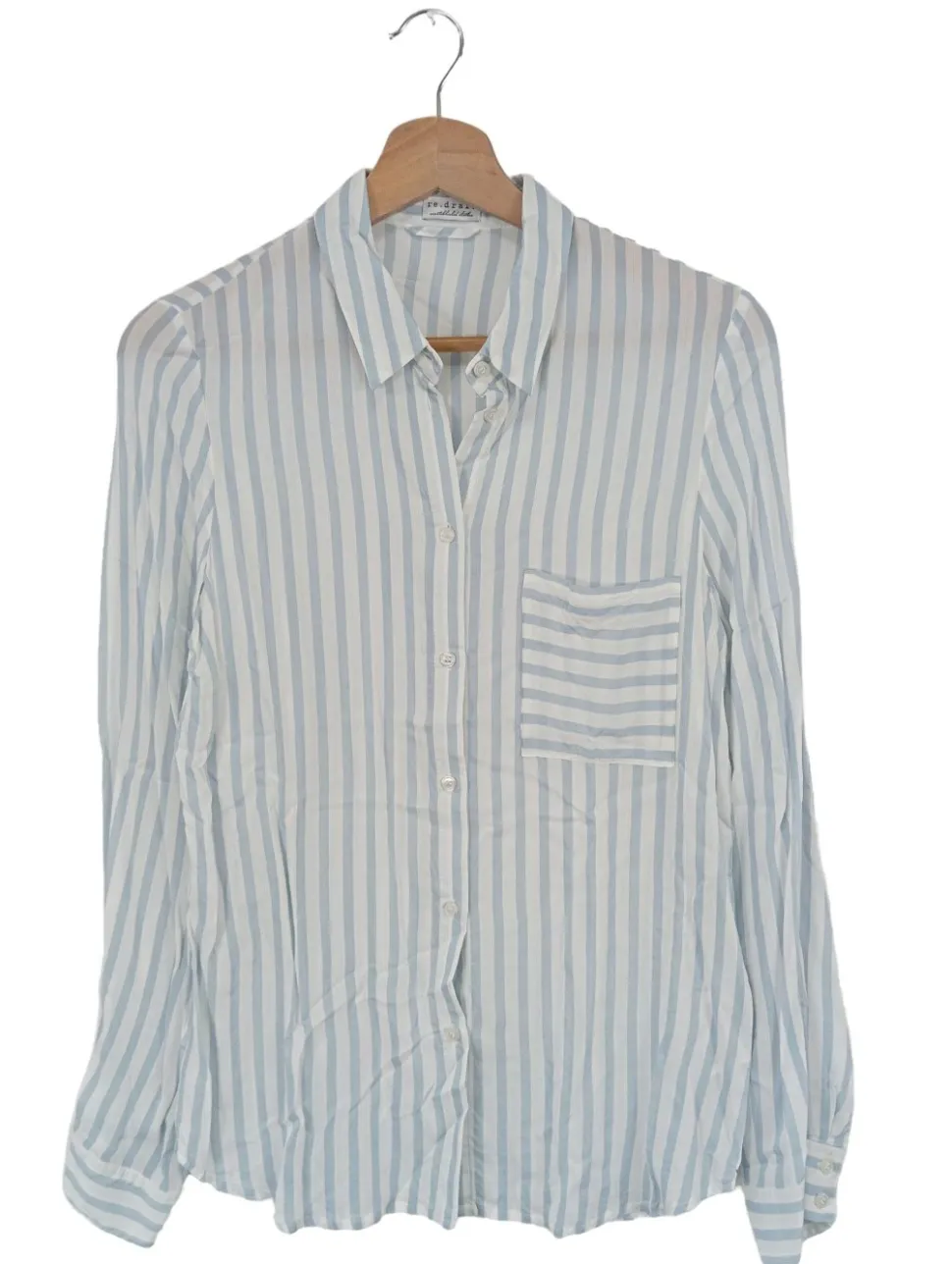 - re.draft Langarmhemd, blau-weiß Streifenmuster