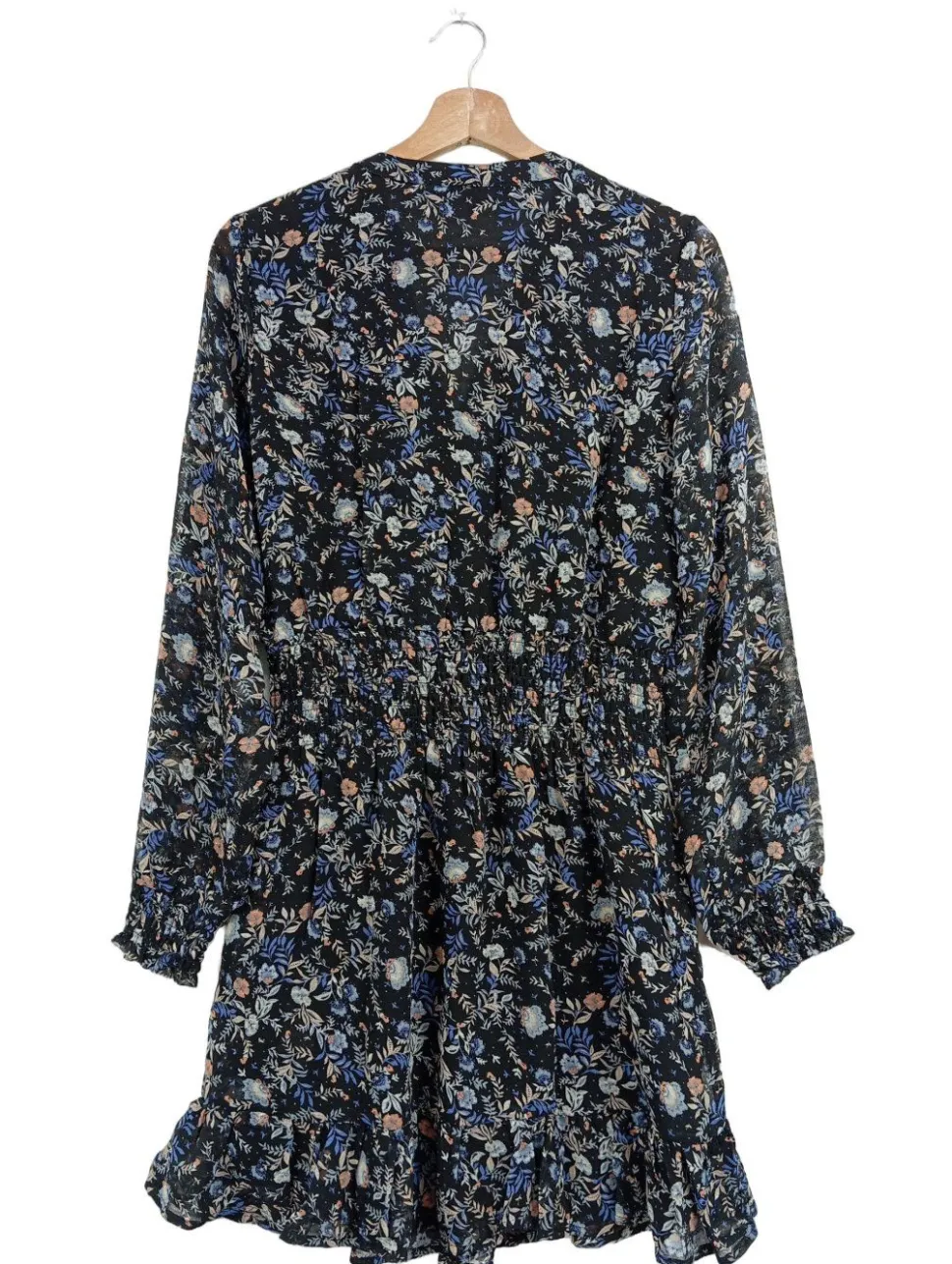 - Rundhalsausschnitt, V-Ausschnitt, Wickelausschnitt, Allover-Druck, Blumenmuster, Casual-Look, schlichter Stil