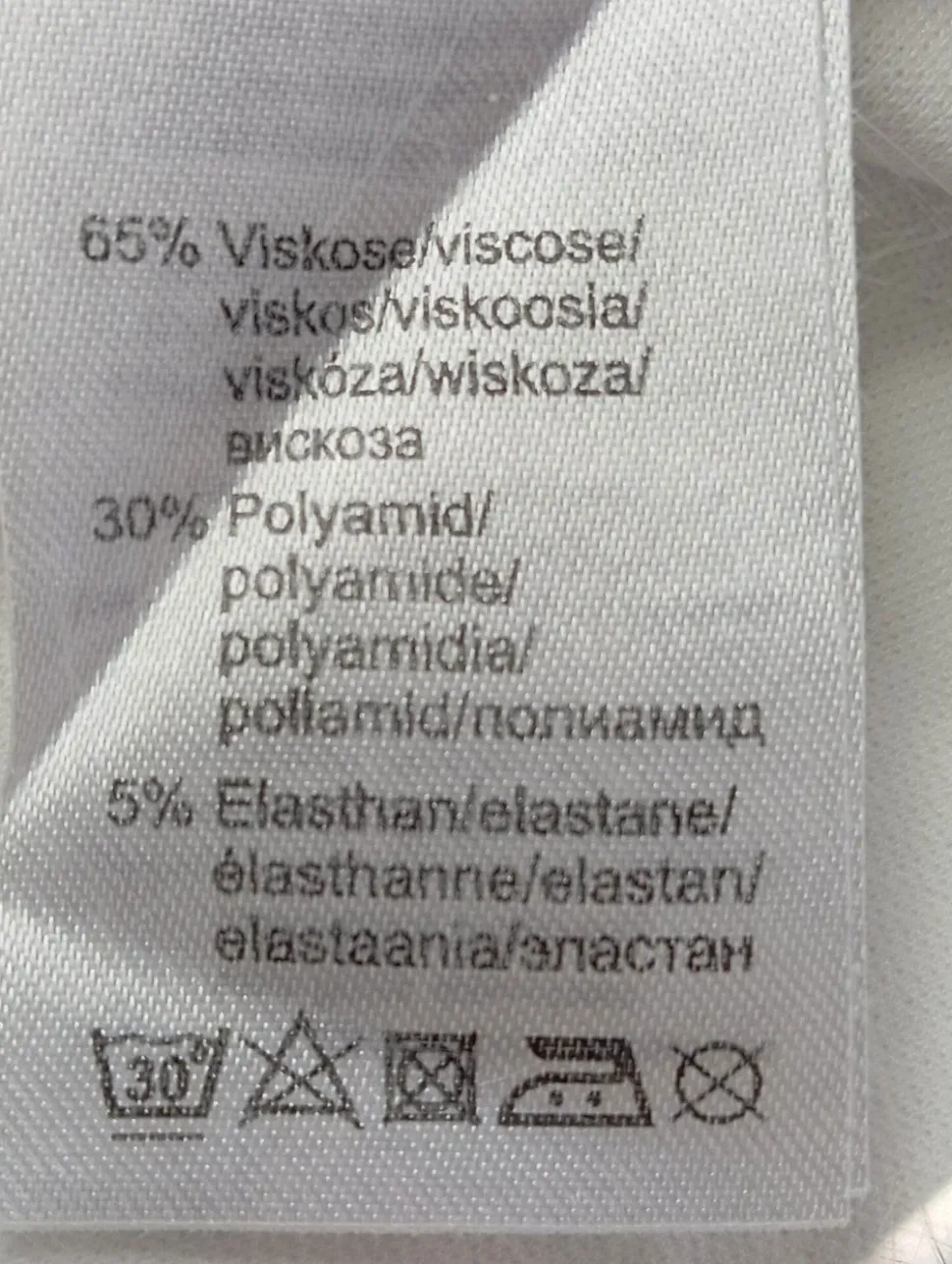 - Außenmaterial: 65% Viskose, 30% Polyamid, 5% Elasthan