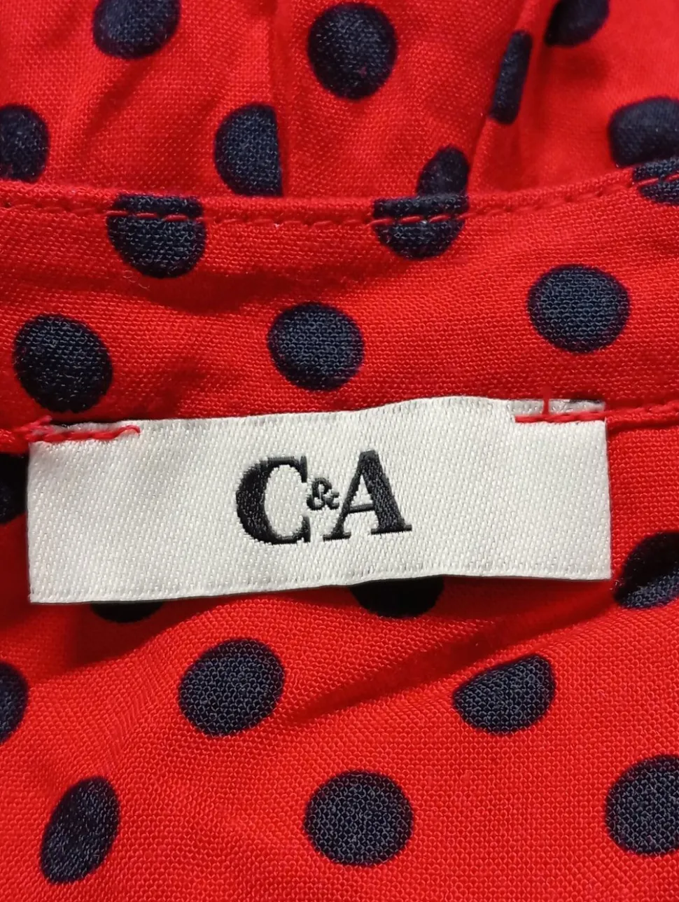 - C&A Langarmkleid, rot-schwarz Punktemuster