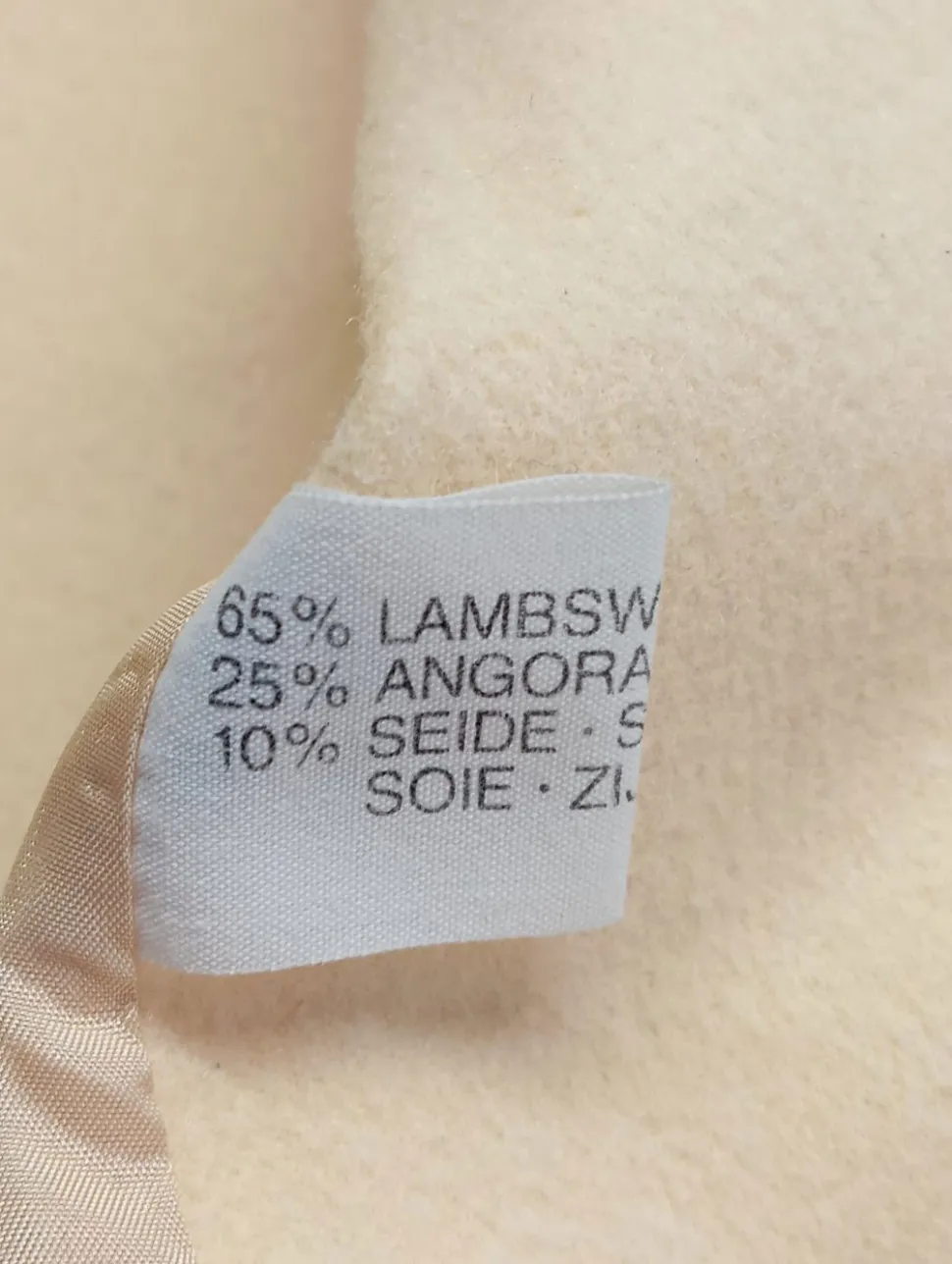 - Außenmaterial: 65% Wolle, 25% Angora/Wolle/Tierhaar, 10% Seide