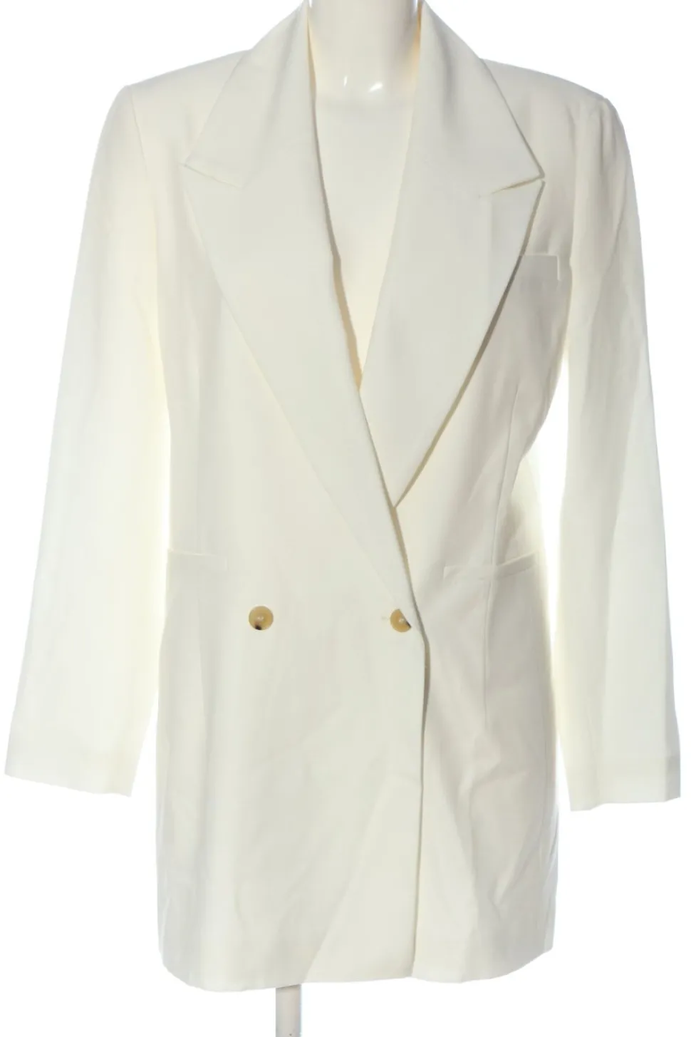 - tiefer V-Ausschnitt, Reverskragen, Schlitz am Ärmelsaum, doppelreihiger Knopfverschluss, Knopfverschluss, Leistentaschen, Business-Look, klassischer Stil