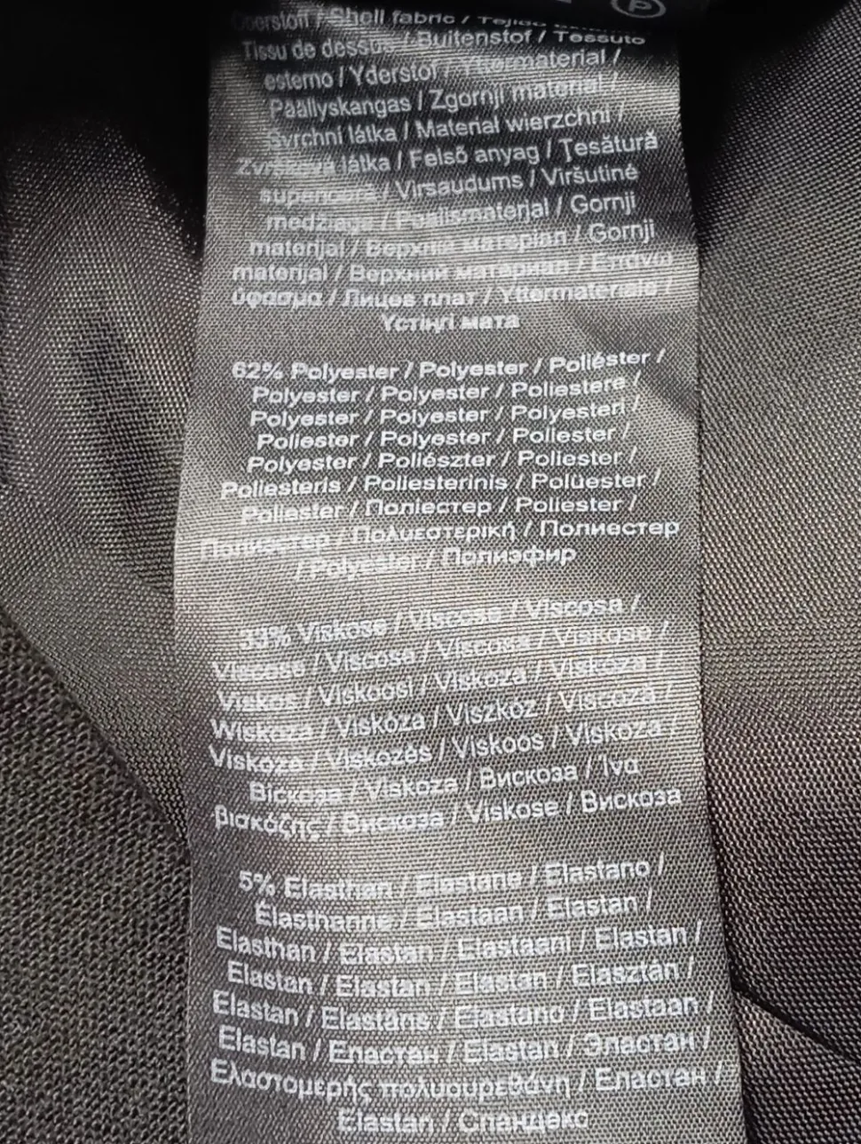 - Außenmaterial: 62% Polyester, 33% Viskose, 5% Elasthan
