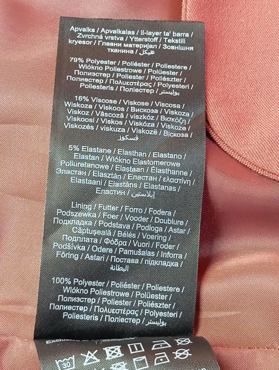 - Außenmaterial: 79% Polyester, 16% Viskose, 5% Elasthan