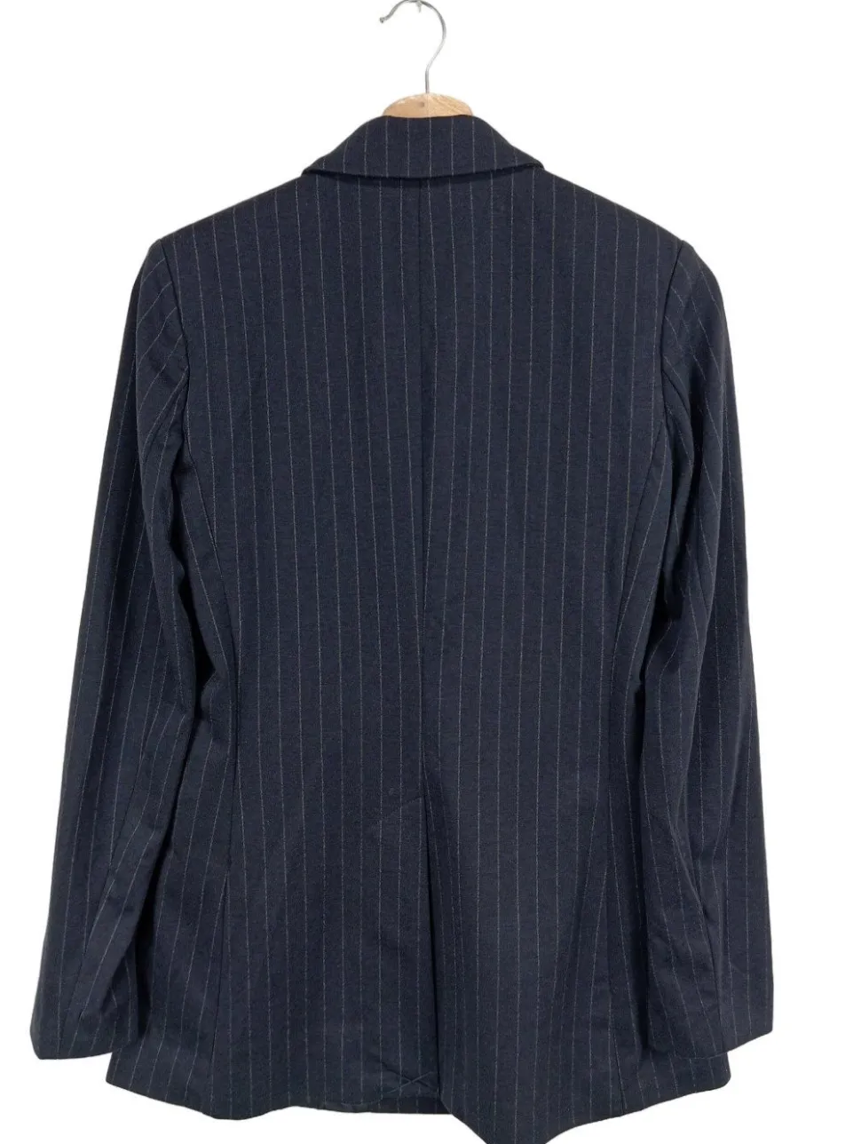 - V-Ausschnitt, Reverskragen, Bund am Ärmelsaum, doppelreihiger Knopfverschluss, Paspeltaschen, Streifenmuster, Business-Look, Casual-Look, Street-Fashion-Look