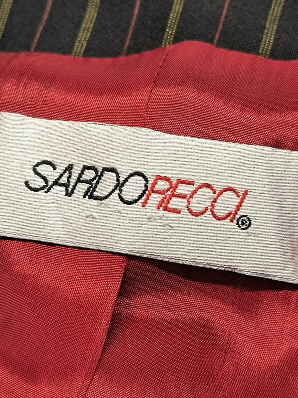 - V-Ausschnitt, Reverskragen, Bund am Ärmelsaum, doppelreihiger Knopfverschluss, Knopfverschluss, Paspeltaschen, Streifenmuster, Business-Look, klassischer Stil, Vintage-Look