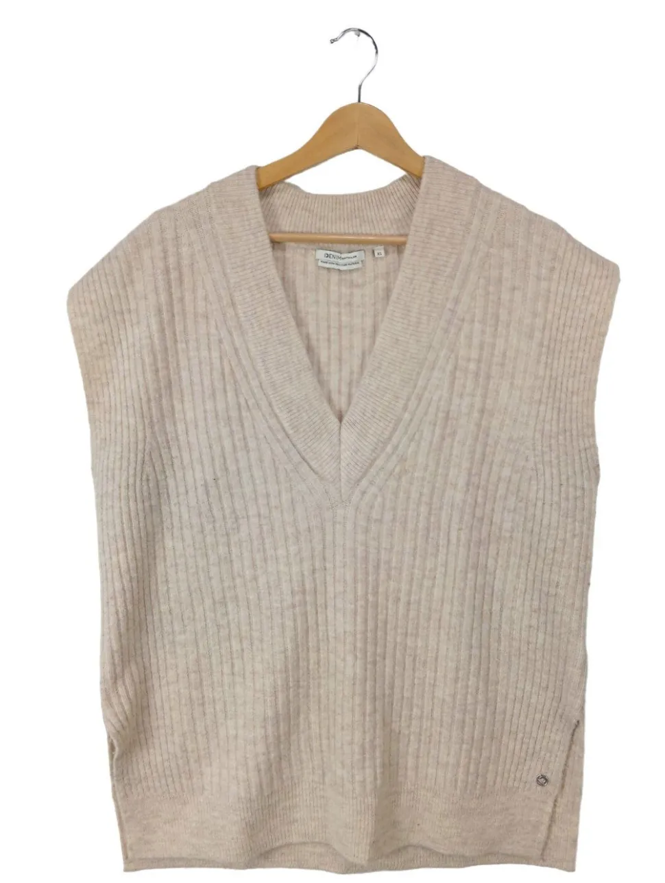 - V-Ausschnitt, angeschnittener Kragen, meliert, Zopfmuster, Casual-Look, Street-Fashion-Look