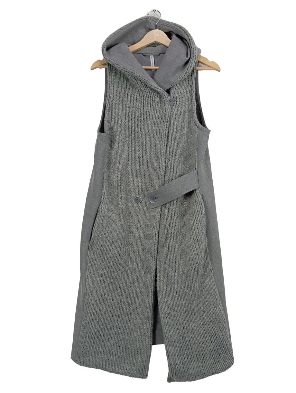 - Ania Schierholt Longstrickweste, hellgrau Zopfmuster