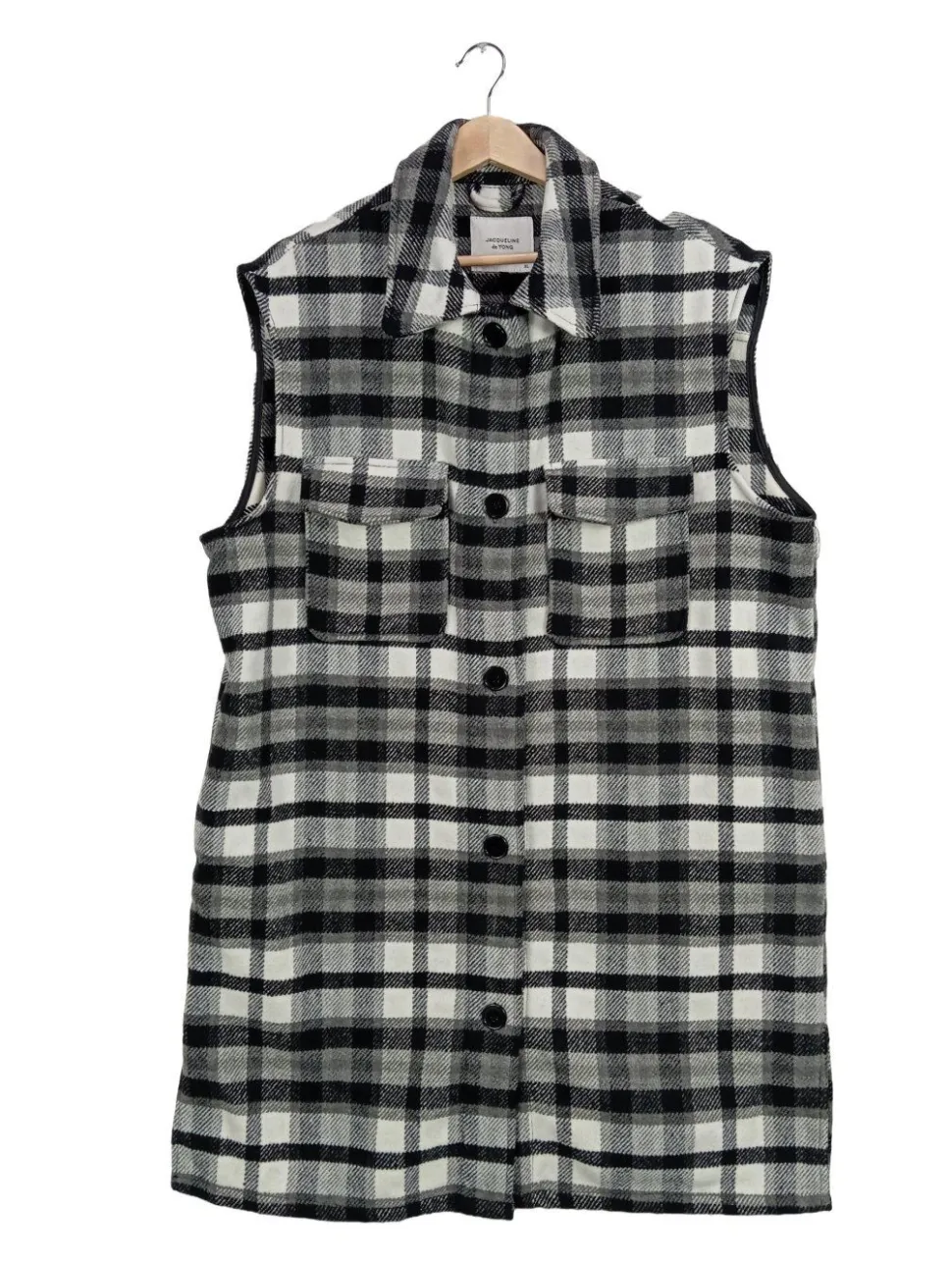 - Jacqueline de Yong Longstrickweste, hellgrau Karomuster