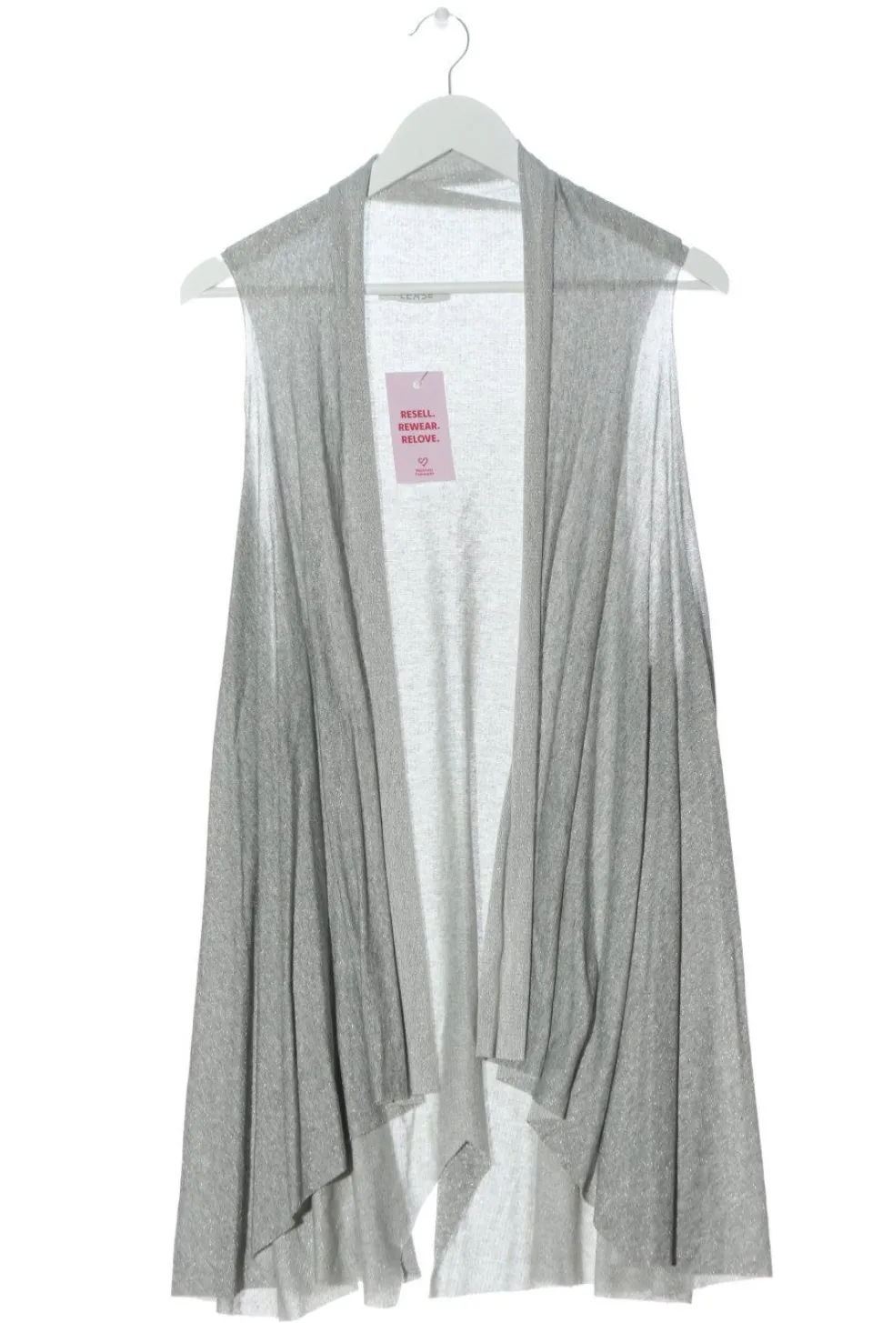 - tiefer V-Ausschnitt, Schalkragen, ohne Verschluss (wird offen getragen), meliert, Zopfmuster, Casual-Look, Glanz-Optik, Street-Fashion-Look, Transparenz-Optik