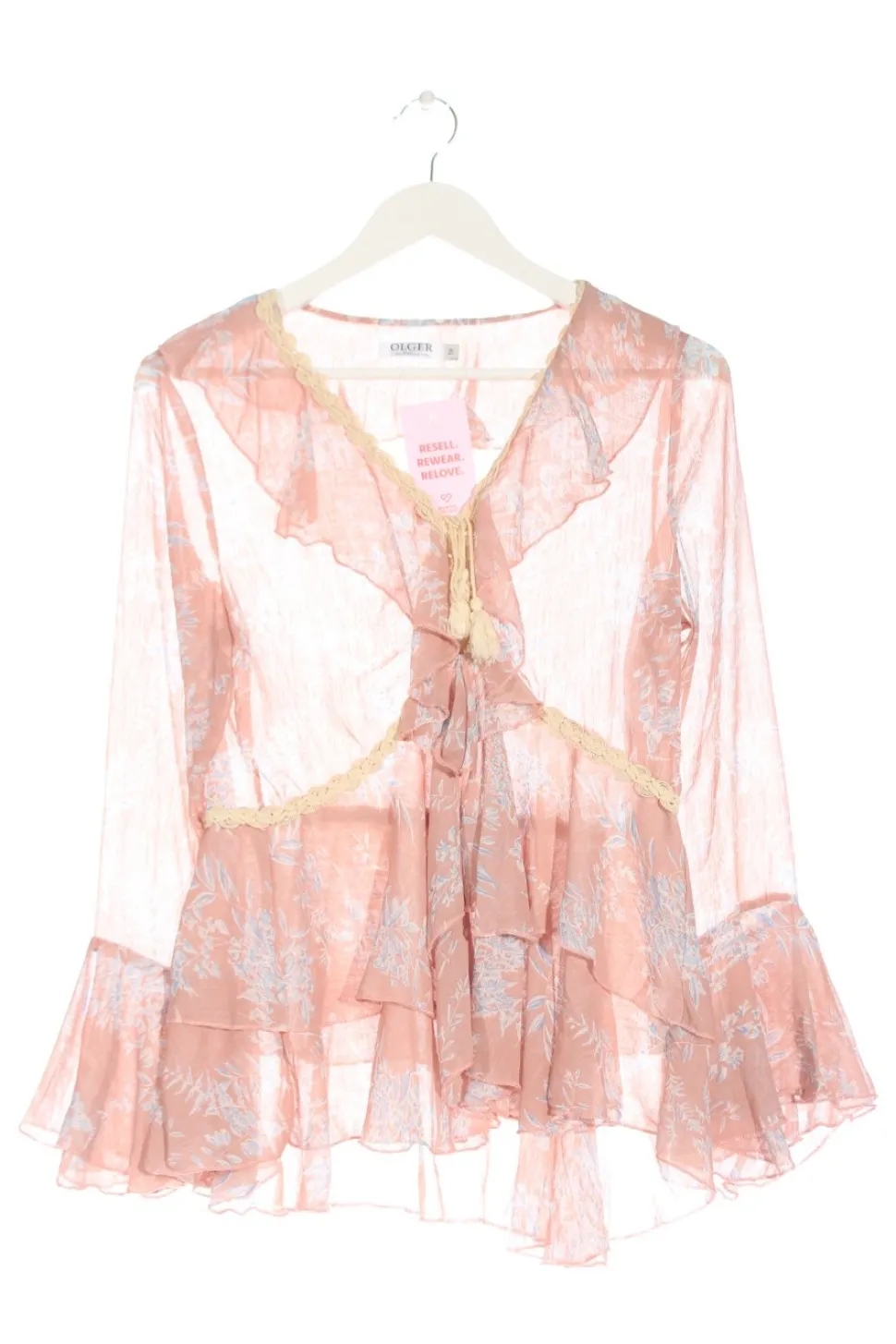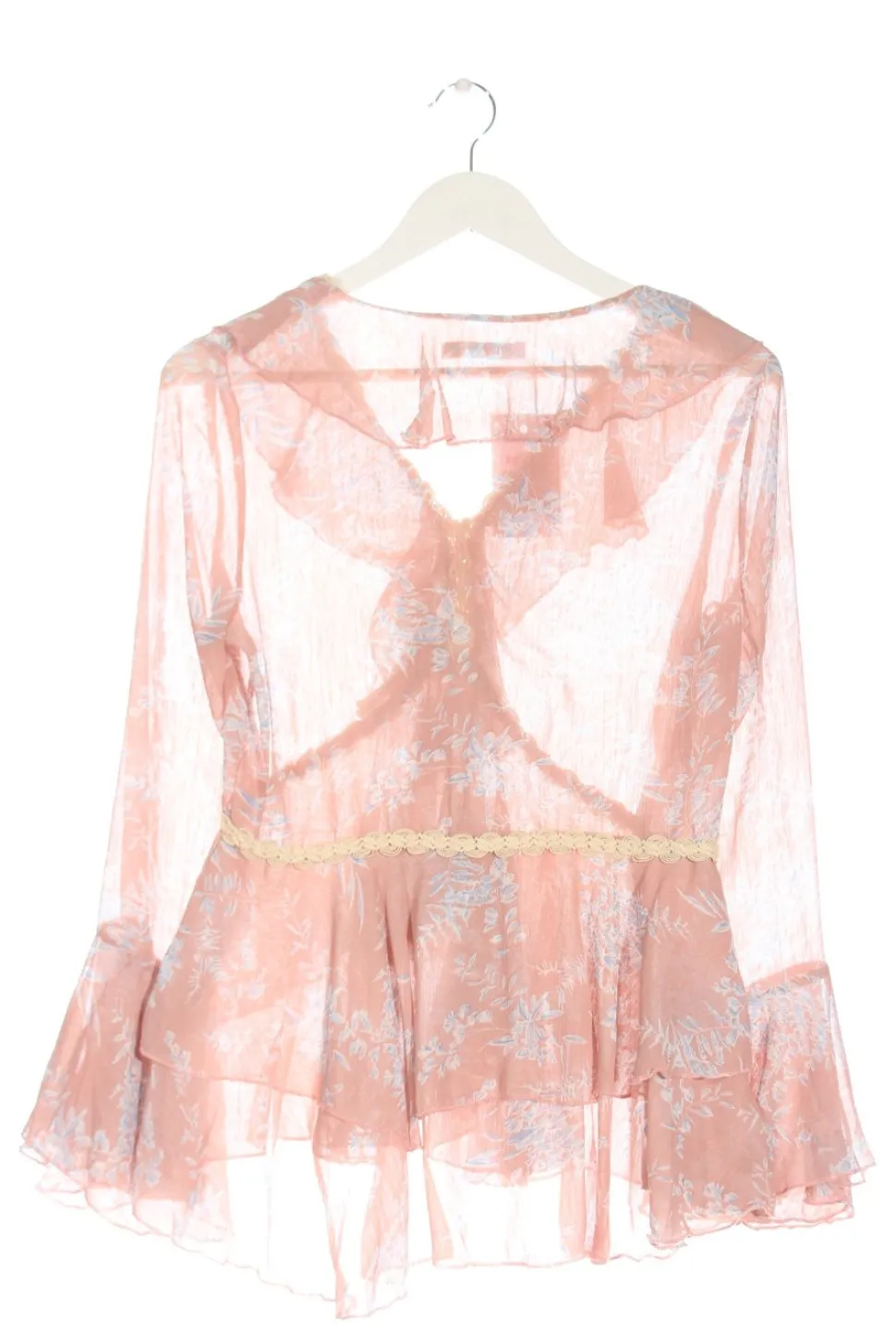 - V-Ausschnitt, Rüschenmanschette, Schleifenverschluss, Allover-Druck, Blumenmuster, Party-Look, Transparenz-Optik