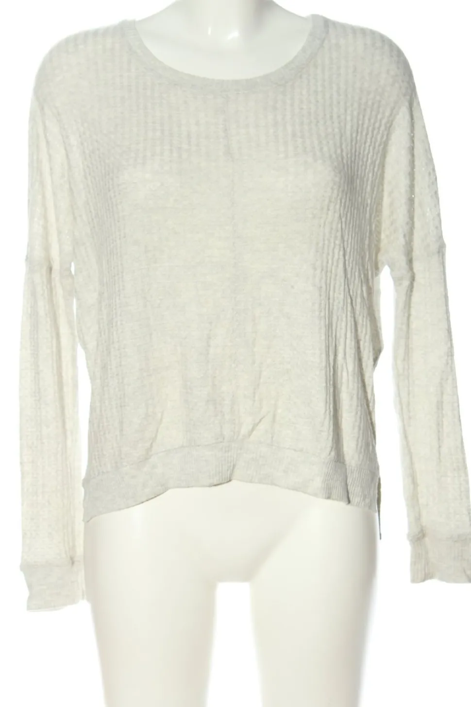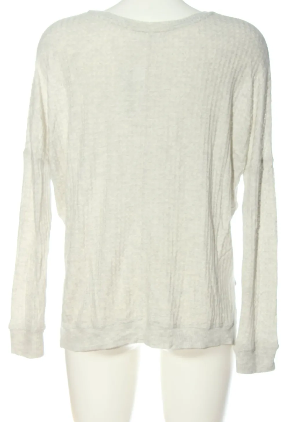 - Velvet Rundhalspullover, wollweiß Zopfmuster