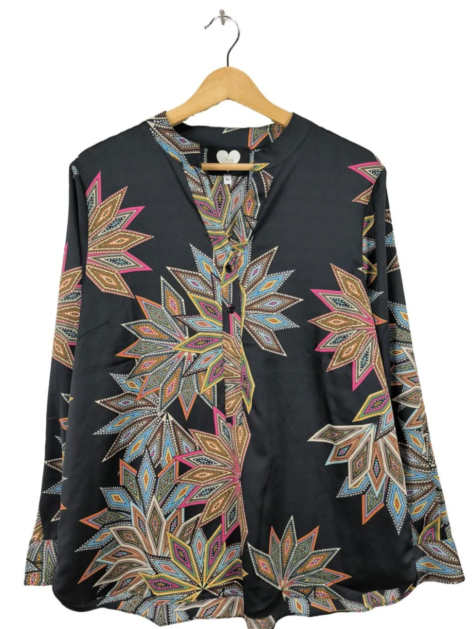 - Anni for friends Schlupf-Bluse, schwarz-braun Allover-Druck