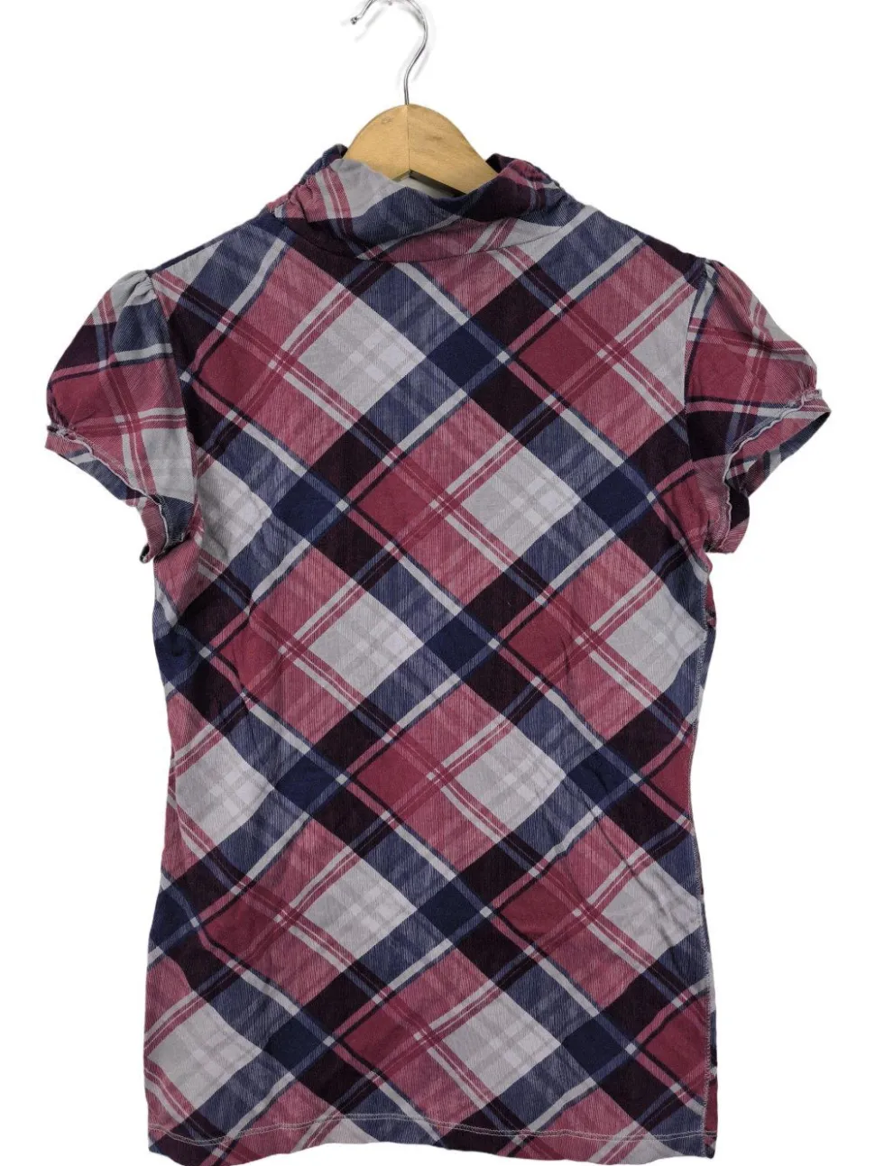 - Rollkragen, Bund am Ärmelsaum, Karomuster, Casual-Look, schlichter Stil, Vintage-Look