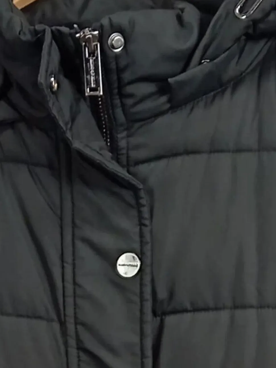- Akzente: Gesteppt, Kapuze, Knopf, Reißverschluss