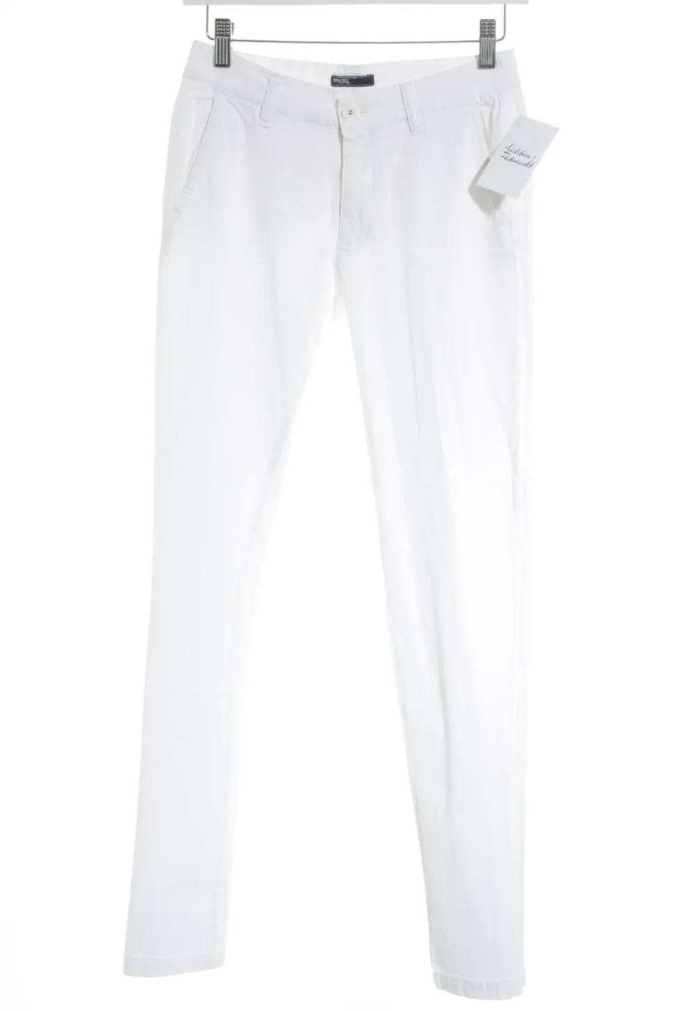 - eingefasster Saum, Hosenreißverschluss, Knopfverschluss, Eingriffstaschen, Paspeltaschen, glatt, Casual-Look, schlichter Stil