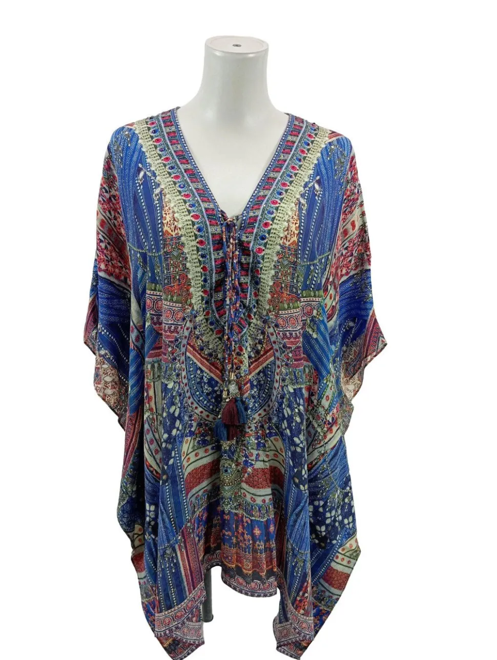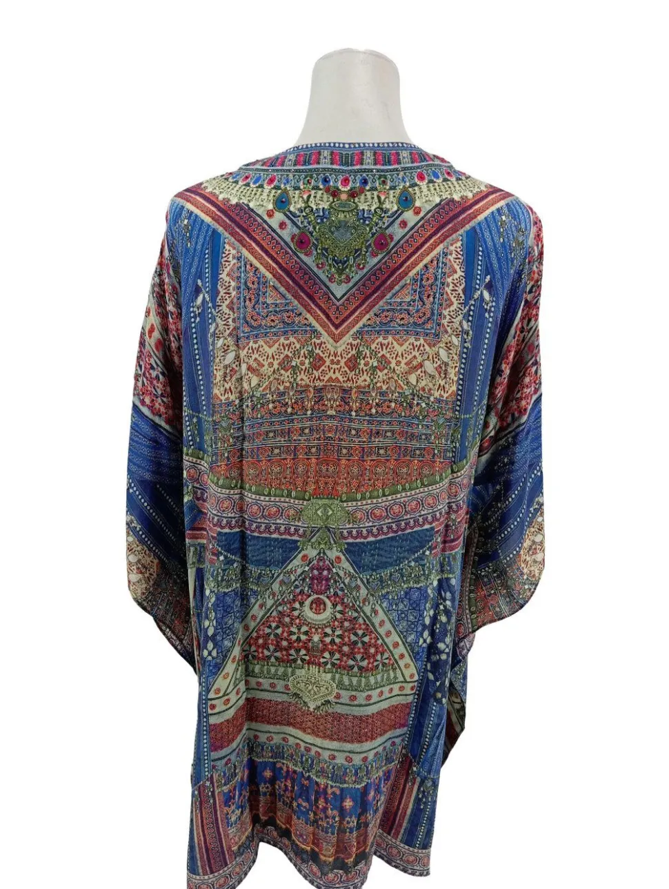 - V-Ausschnitt, Bund am Ärmelsaum, grafisches Muster, Casual-Look, Elegant