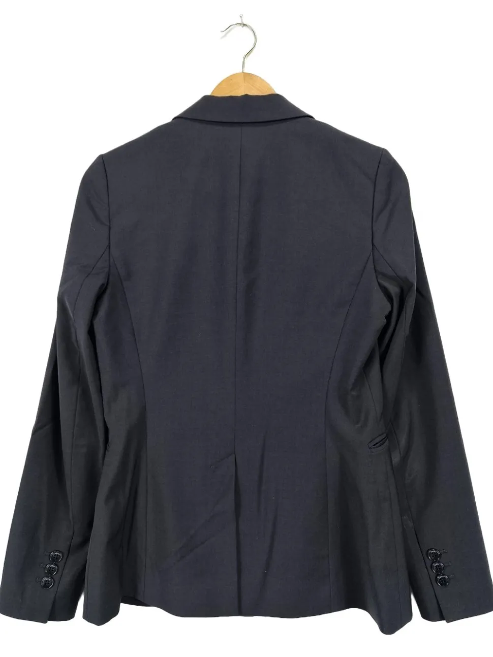 - V-Ausschnitt, Umlegekragen, Schlitz am Ärmelsaum, Knopfverschluss, Eingriffstaschen, Paspeltaschen, Business-Look, klassischer Stil