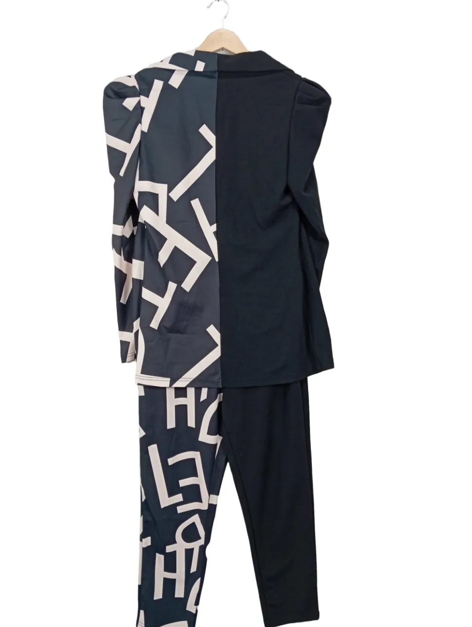 - Chic me Strick Twin Set, wollweiß-schwarz Schriftzug gedruckt