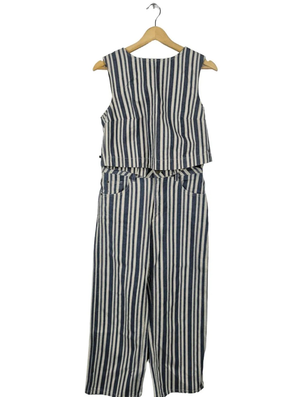 - Sézane Strick Twin Set, blau-weiß Streifenmuster