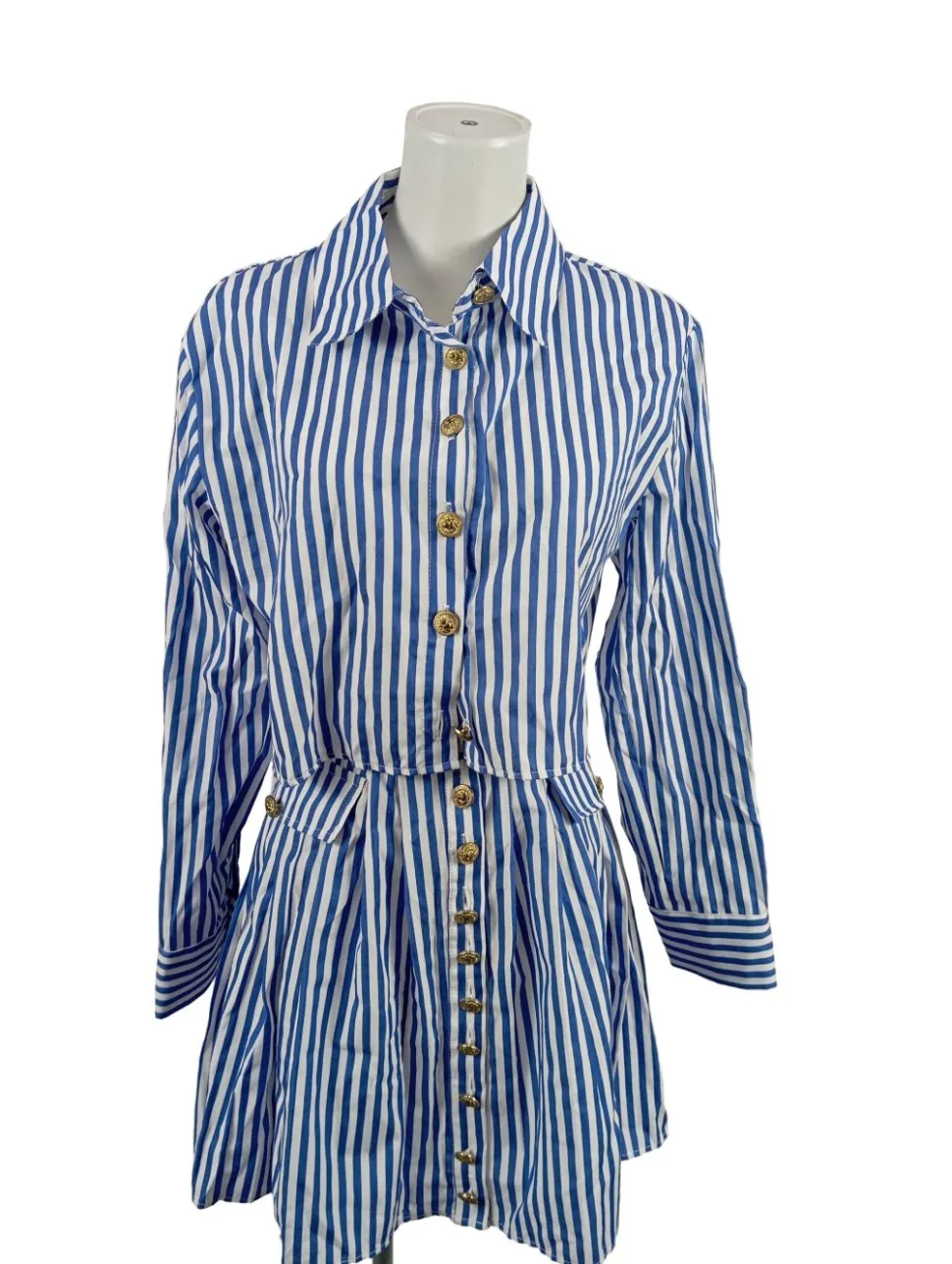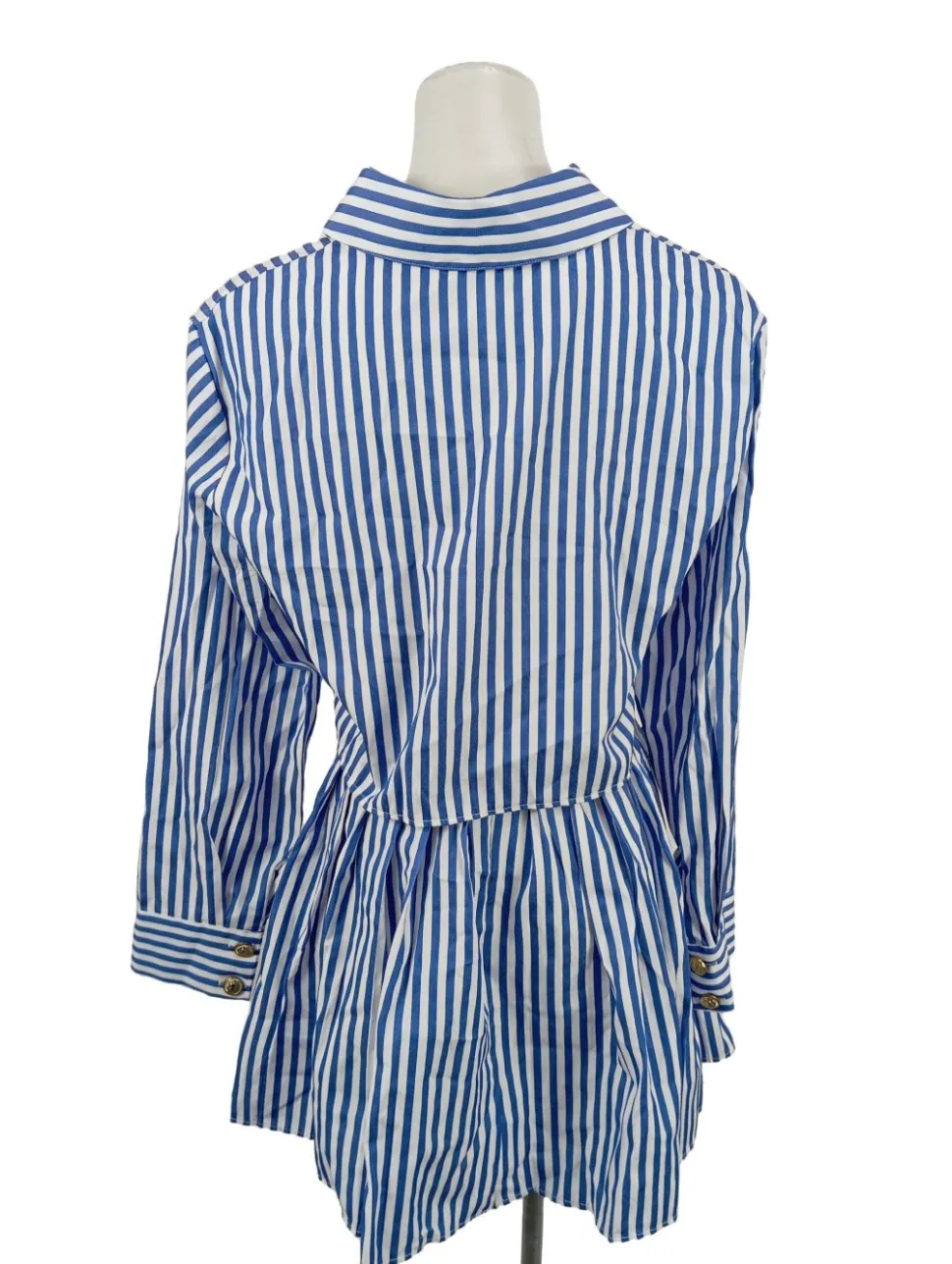 - Knopfleisten-Ausschnitt, Knopfverschluss am Ärmelsaum, Knopfverschluss, Pattentaschen, Streifenmuster, Casual-Look, schlichter Stil, Street-Fashion-Look