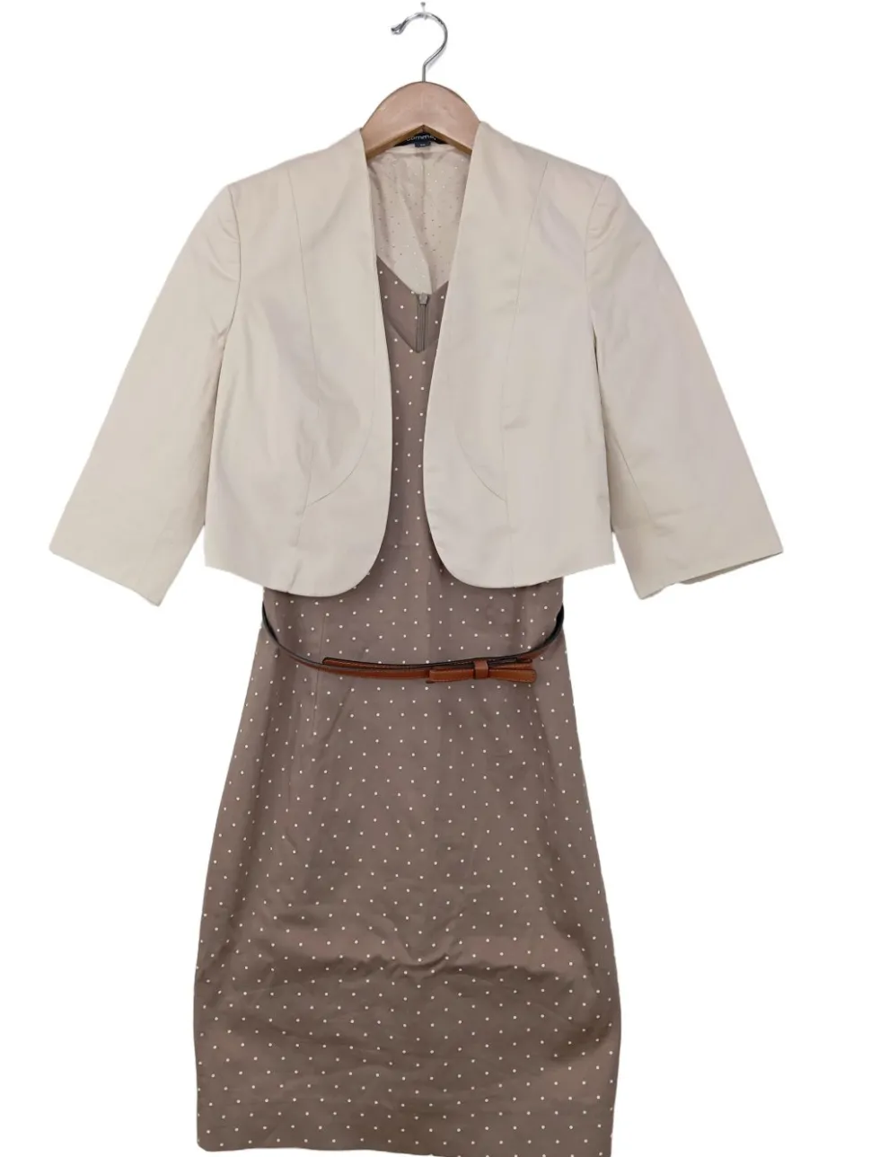 - Comma Strick Twin Set, braun-wollweiß Punktemuster