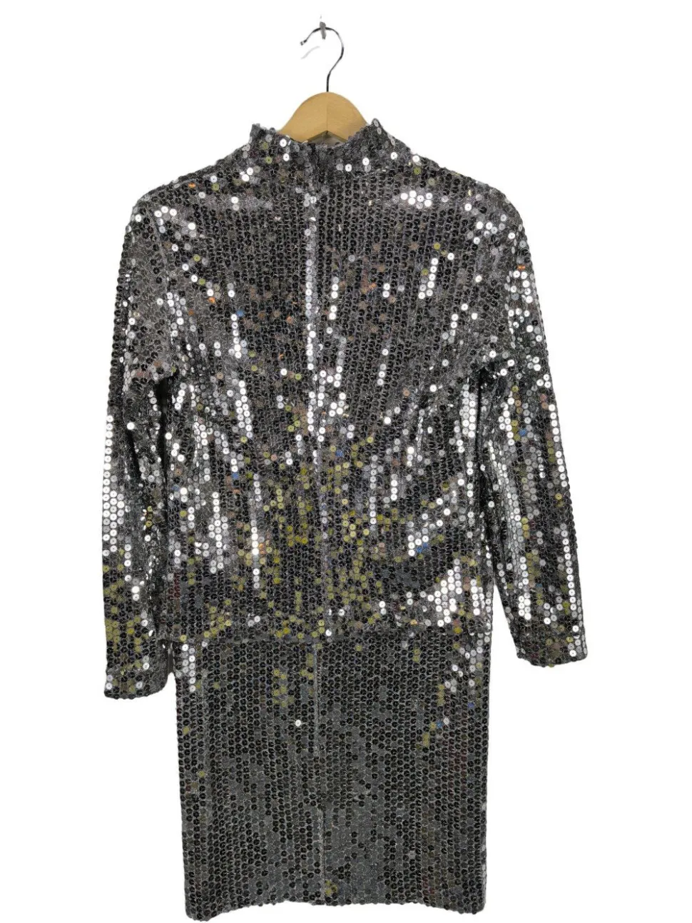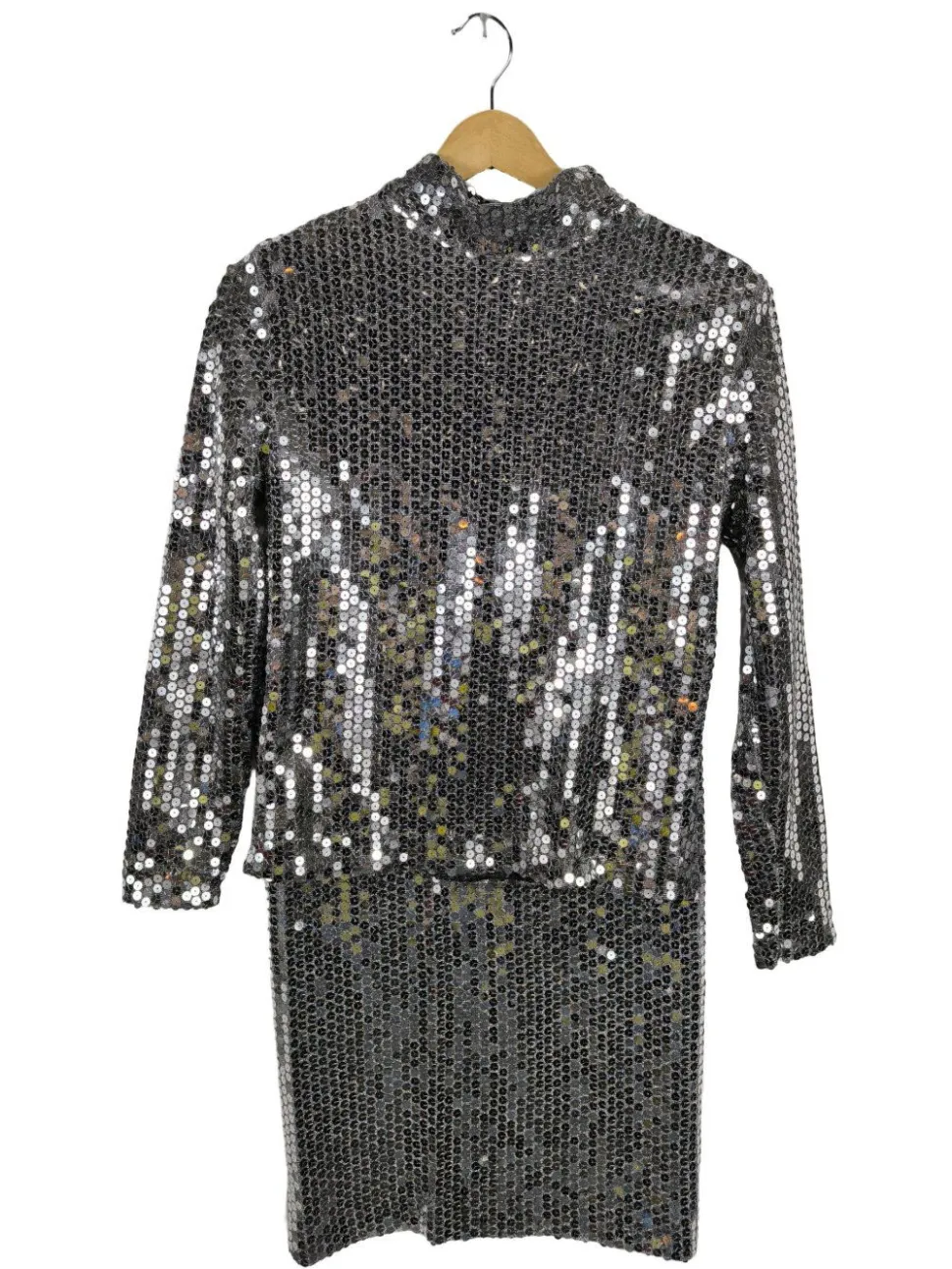 - Stehkragen, offene Kanten am Ärmelsaum, Elegant, Glitzer-Optik