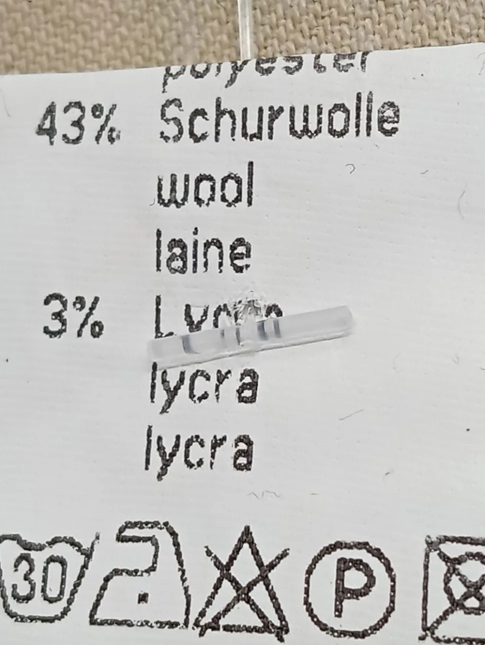 - Außenmaterial: 54% Polyester, 43% Wolle, 3% Elasthan