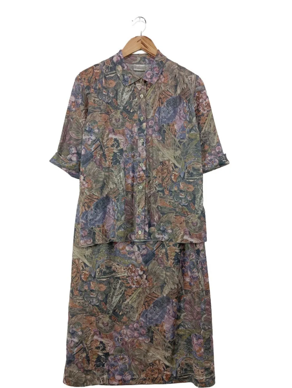 - Knopfleisten-Ausschnitt, Hemdkragen, Umschlagmanschetten, Knopfverschluss, Allover-Druck, Mustermix, Casual-Look, schlichter Stil, Street-Fashion-Look