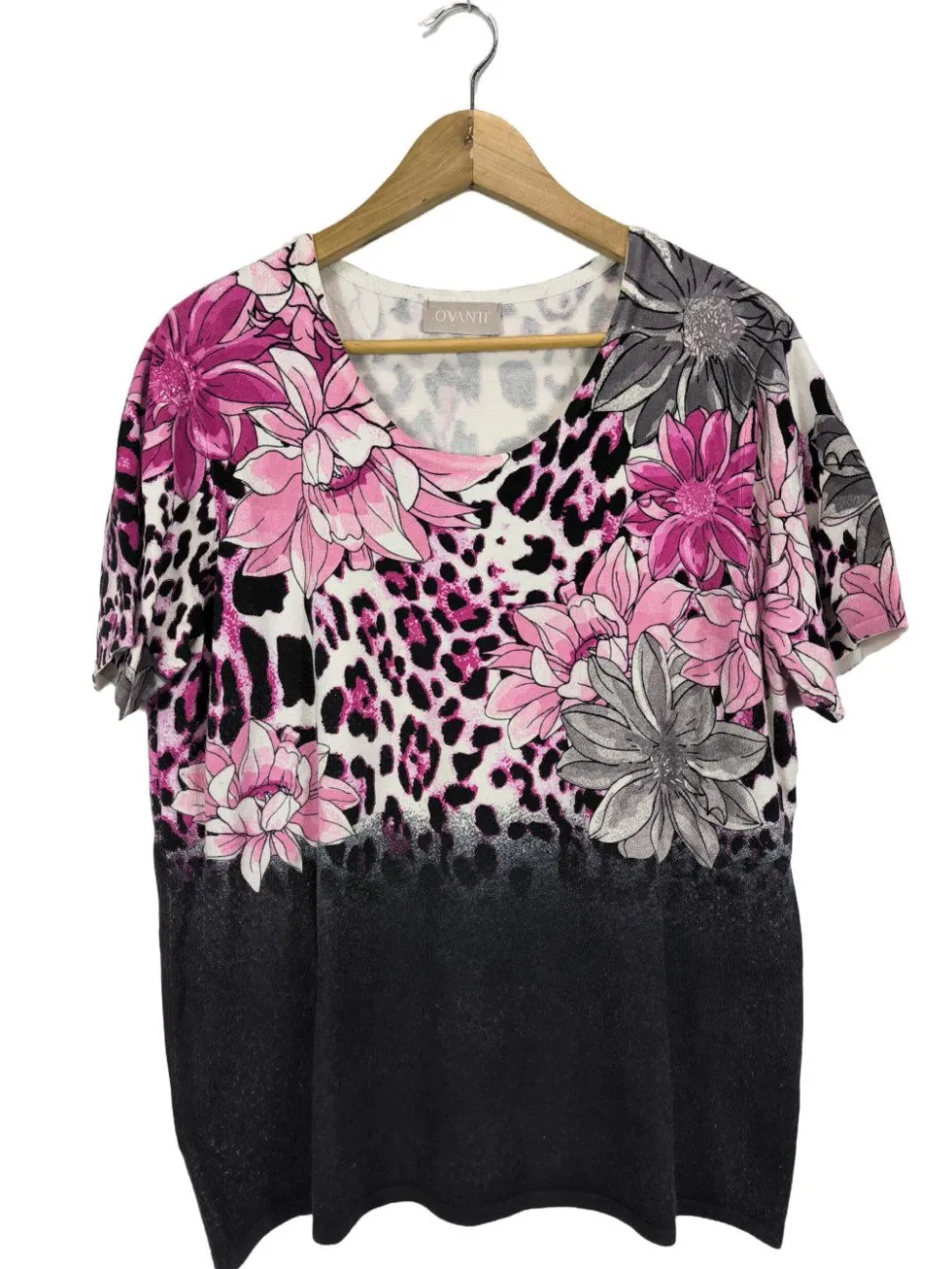 - U-Ausschnitt, Bund am Ärmelsaum, Blumenmuster, Leomuster, Casual-Look