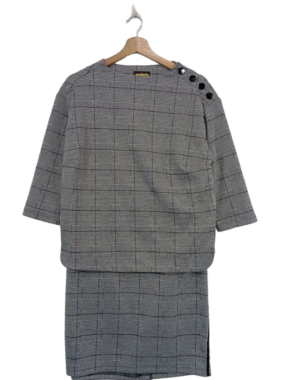 - Ambria Strick Twin Set, hellgrau Karomuster