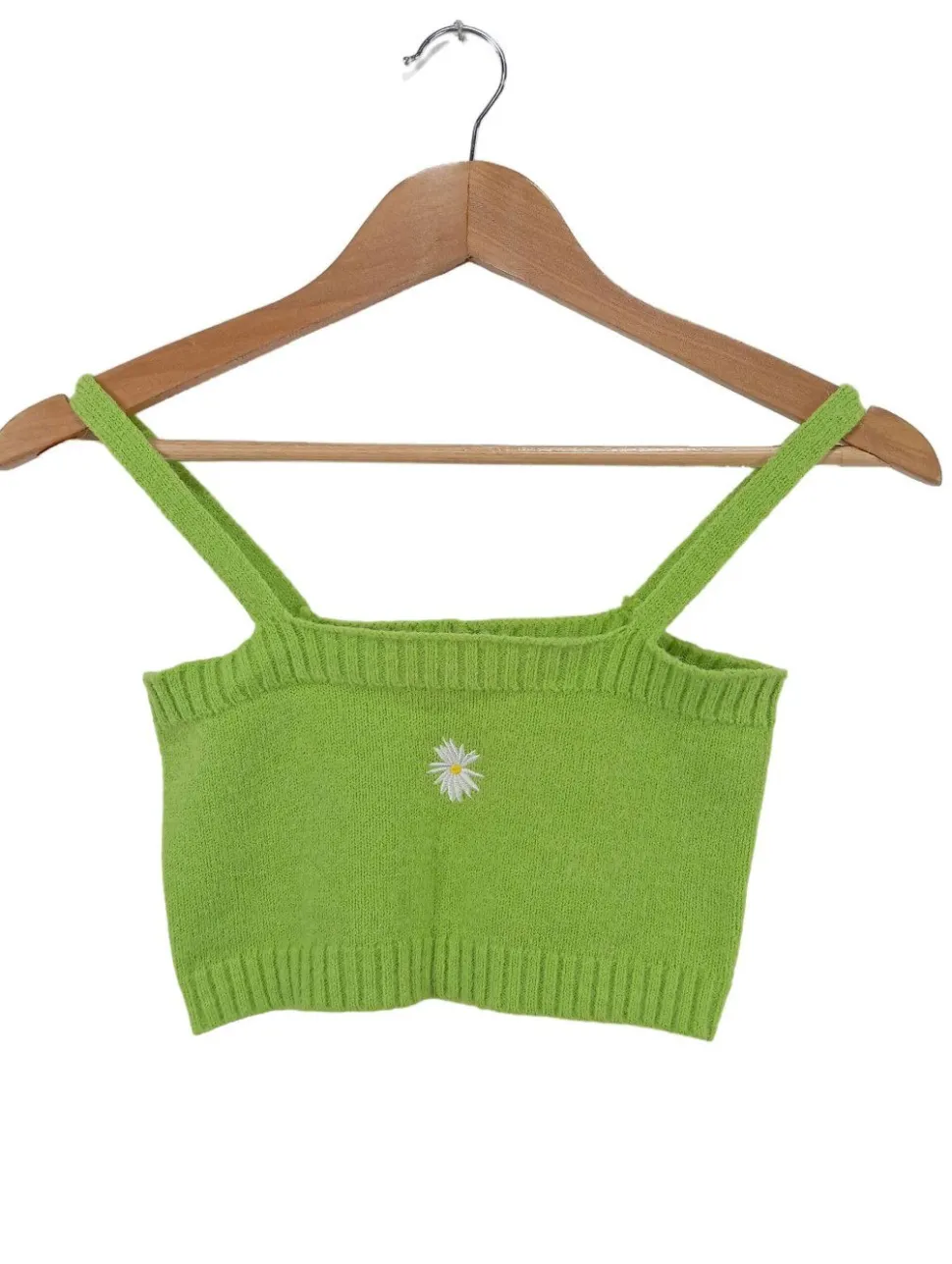 - Spaghettiträger, V-Ausschnitt, Armbündchen, Knopfverschluss, Zopfmuster, Casual-Look, Street-Fashion-Look, Vintage-Look