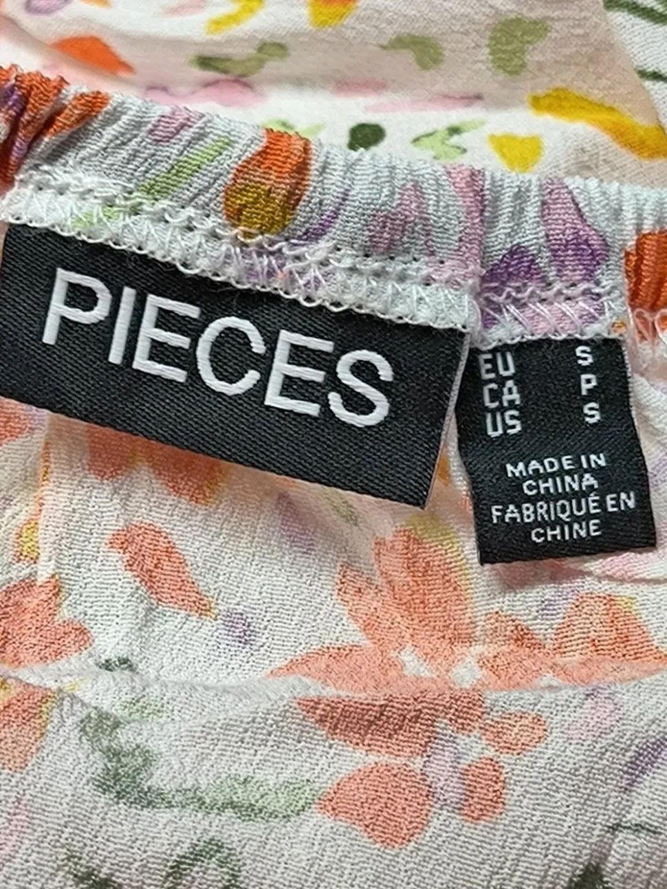 - Pieces Strick Twin Set, hellorange-pink abstraktes Muster