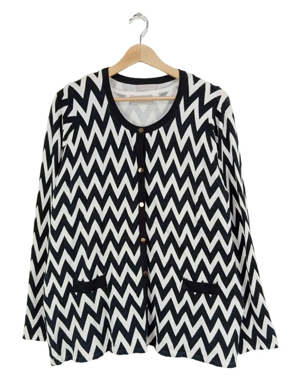 - Ovanti Strick Twin Set, schwarz-weiß Allover-Druck